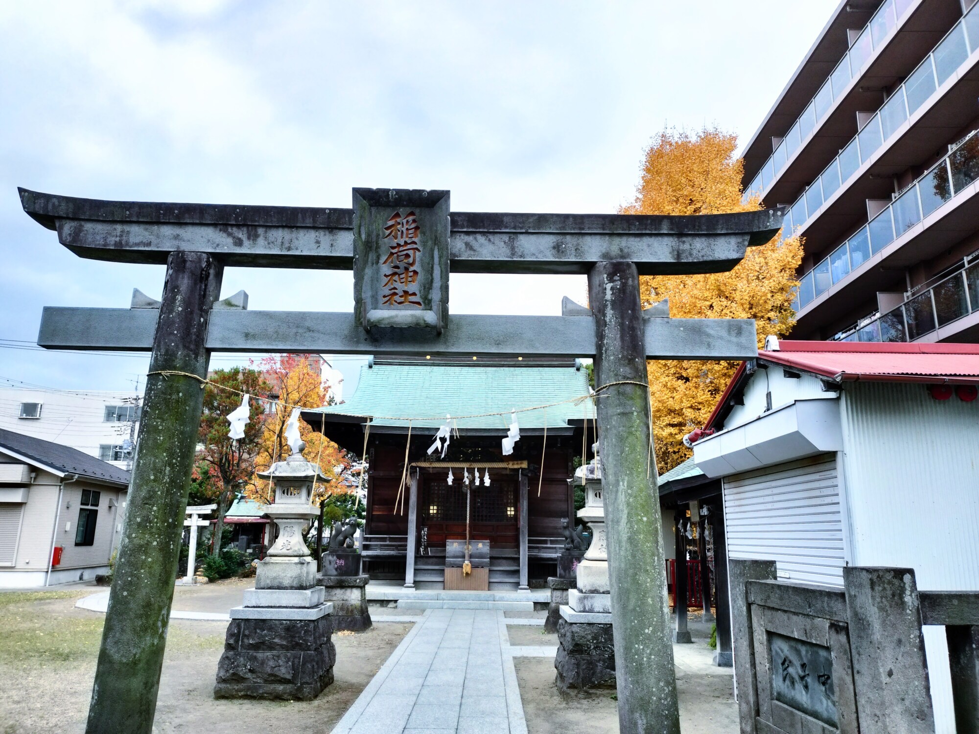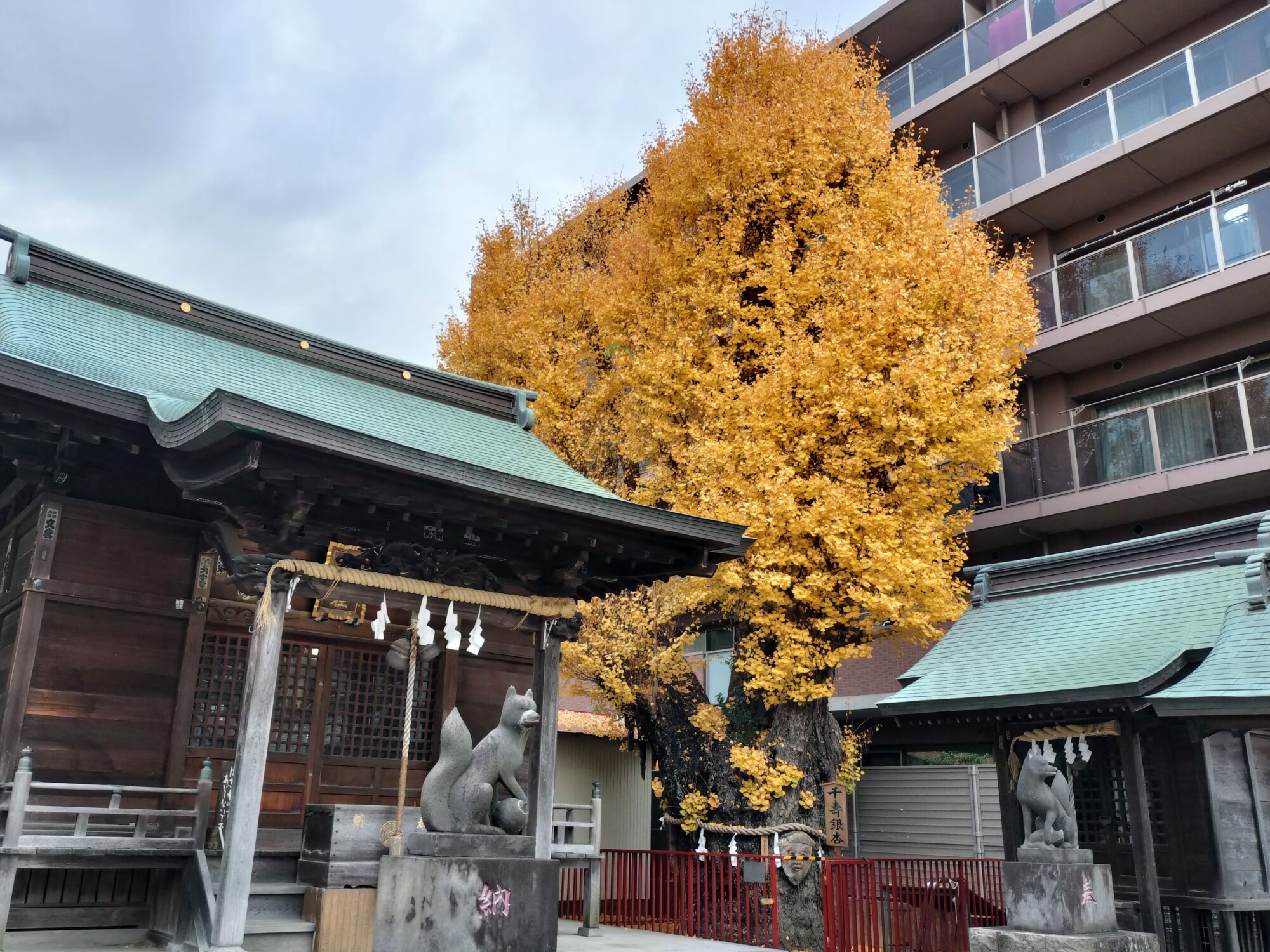 光林寺から徒歩1分ほどにある押切稲荷神社は、イチョウの大木が黄色く色づいている。