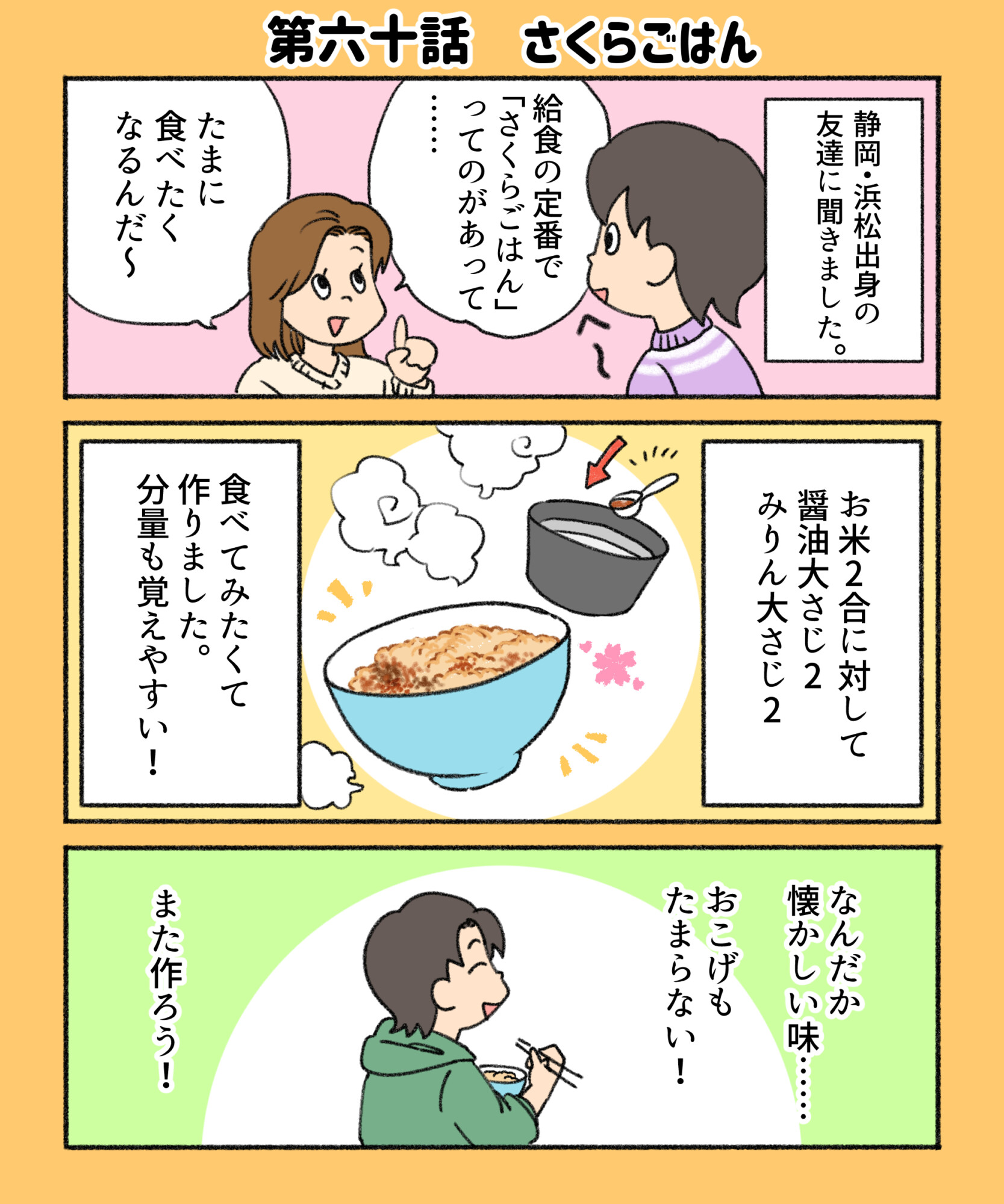 醤油でほんのり色づいたごはんが薄い桜色に見えたことから『さくらごはん』と呼ばれるようになったそう。