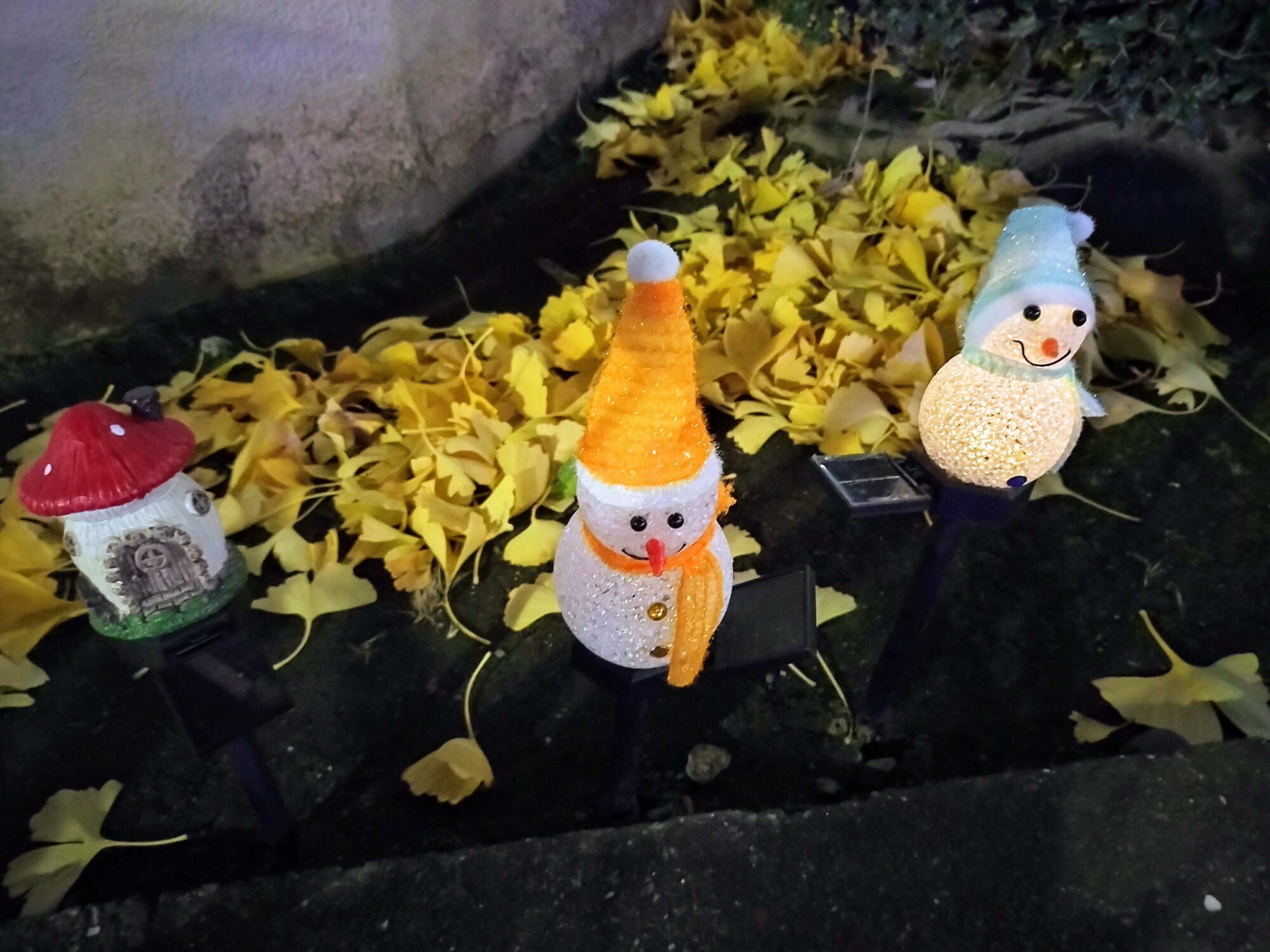 ふと足元を見ると、小さな雪だるまも輝いていた。