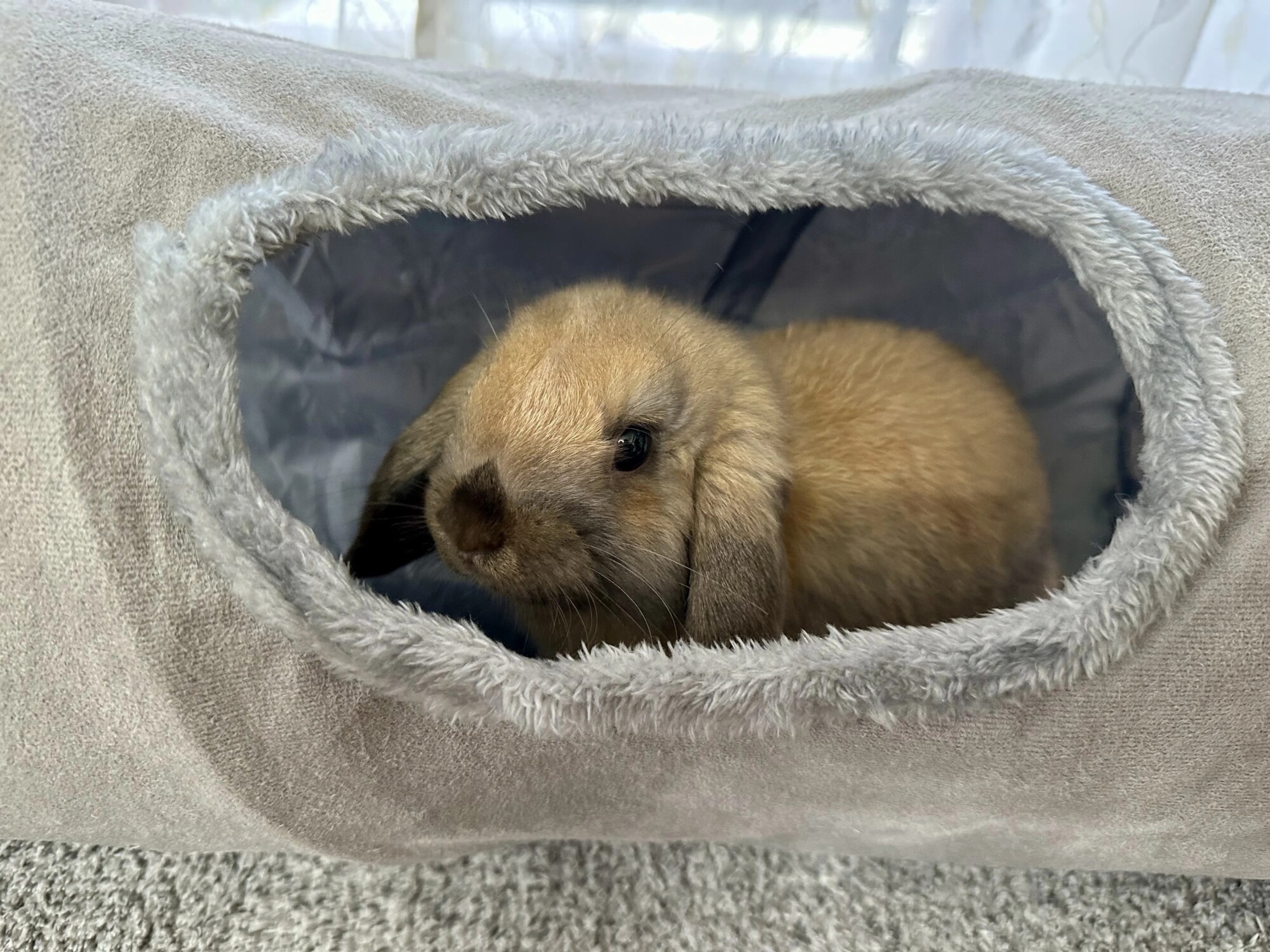 わが家の新しい家族です。トンネル遊びが大好きで、早朝から柵をガタガタ揺すって「遊びたいよー」とおねだりします。トンネルで遊んだあとは、葉っぱと果物をパクパク。