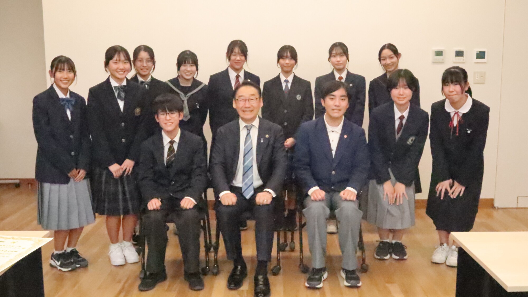 派遣事業は戦後80年の記念事業として、市内の中学生16人(各校1人)を広島市に派遣した。