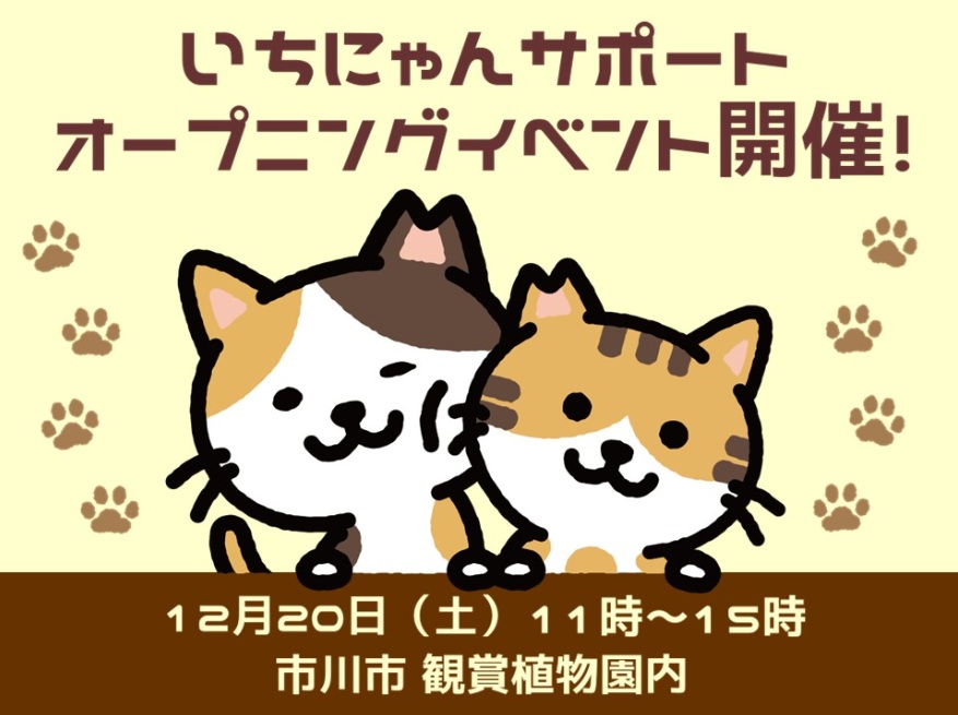 「いちにゃんサポート」開所を記念して、12月20日(土)11時~、オープニングイベントが開催される。このイベントでは、猫のミニ譲渡会、猫活動団体の活動パネル展示、アート作品展示や、キャットフードのフードドライブなどが行われる。なお、鑑賞植物園には駐車場がないので、公共交通機関の利用を。