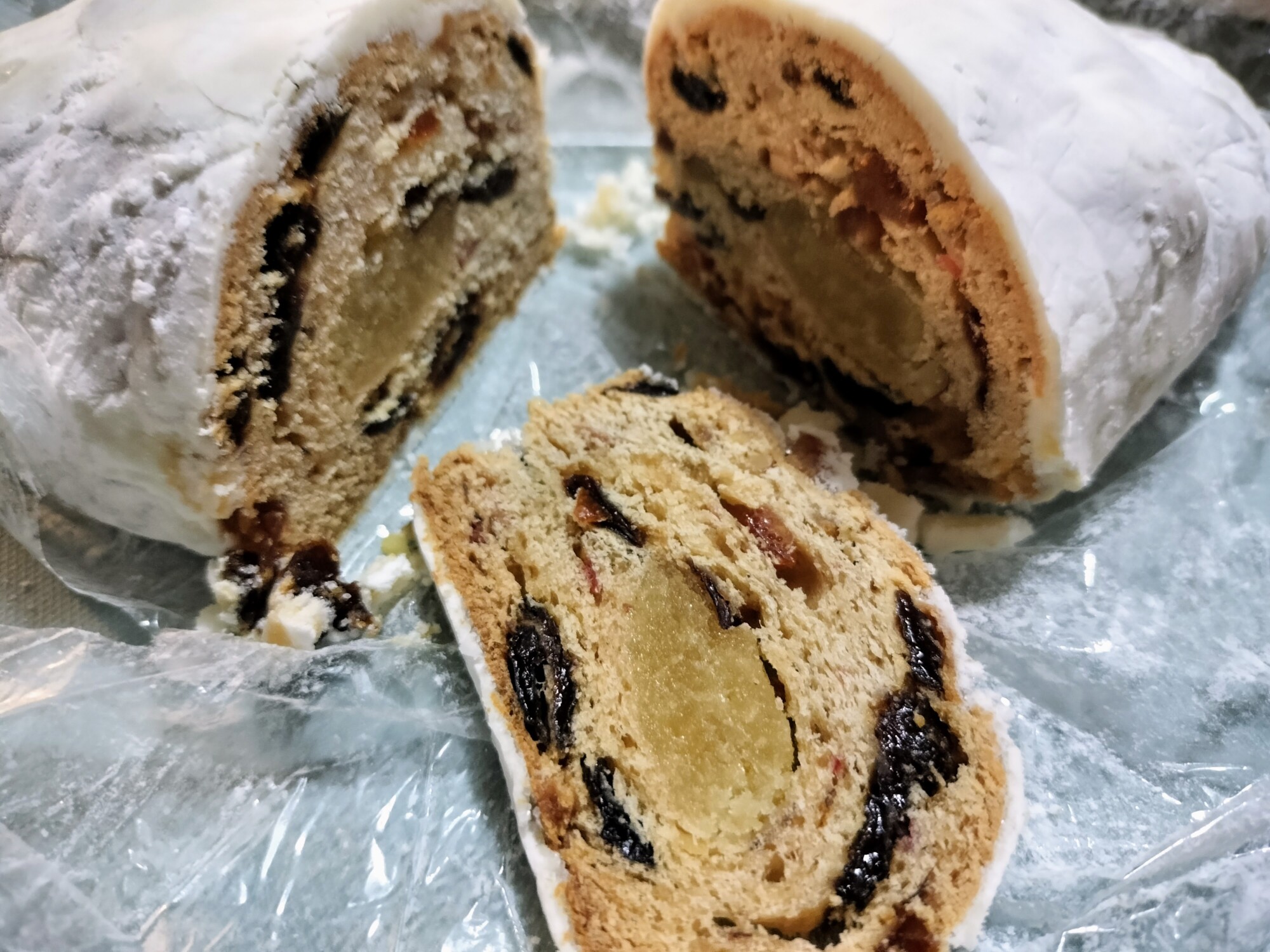 ドイツではこのシュトーレンを薄くカットして少しずつ食べながらクリスマスを待ちわびるという風習がある。