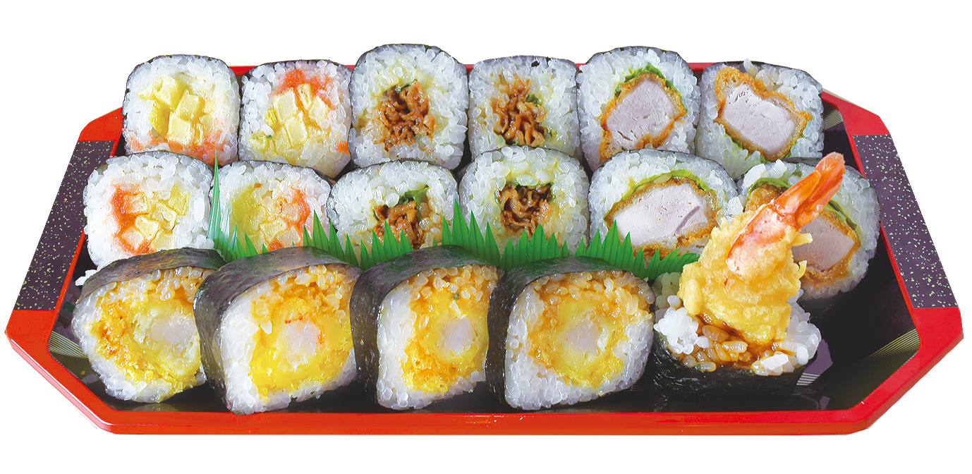 めんたいマヨポテト巻、カルビ巻、ロースカツ巻、エビ天ぷら巻