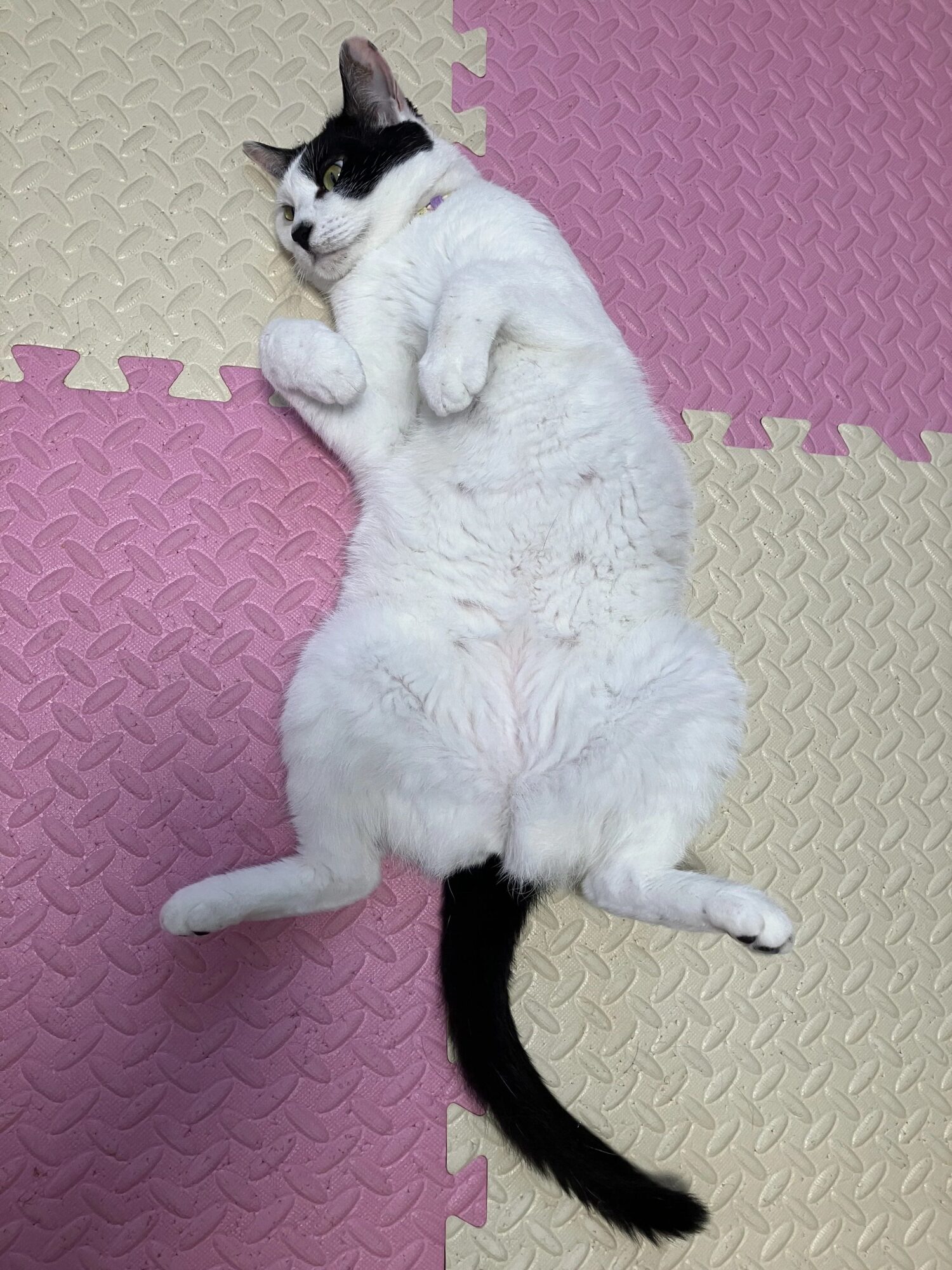 ヘソテンが得意、名前を呼ぶと返事をするハチワレちゃん