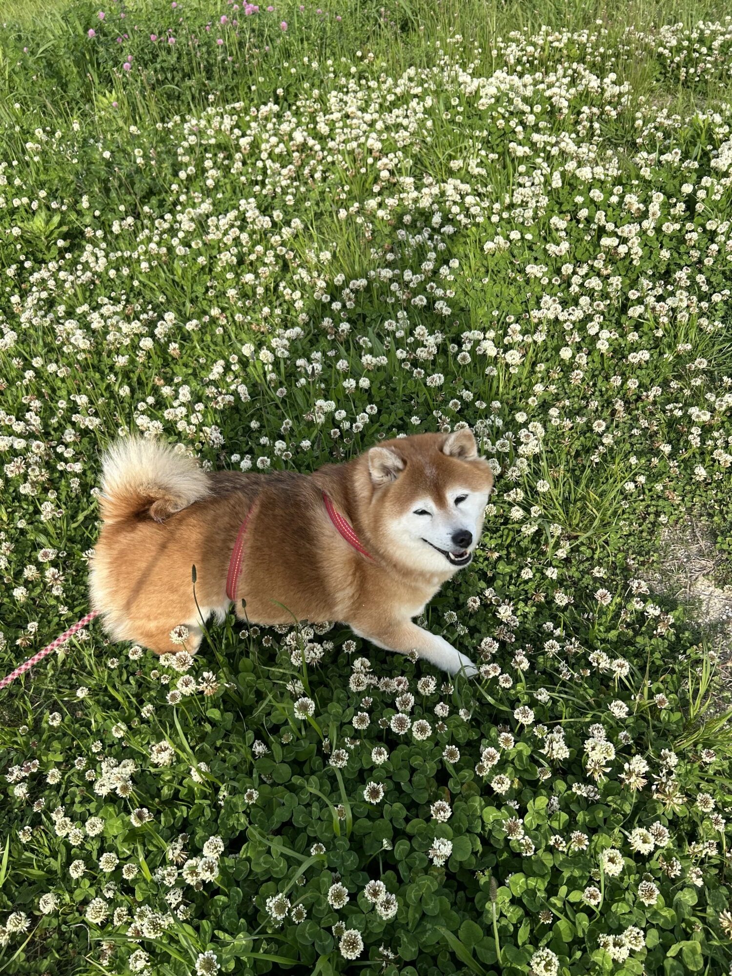散歩大好き。涼しい時は芝生でボール投げは必須です
