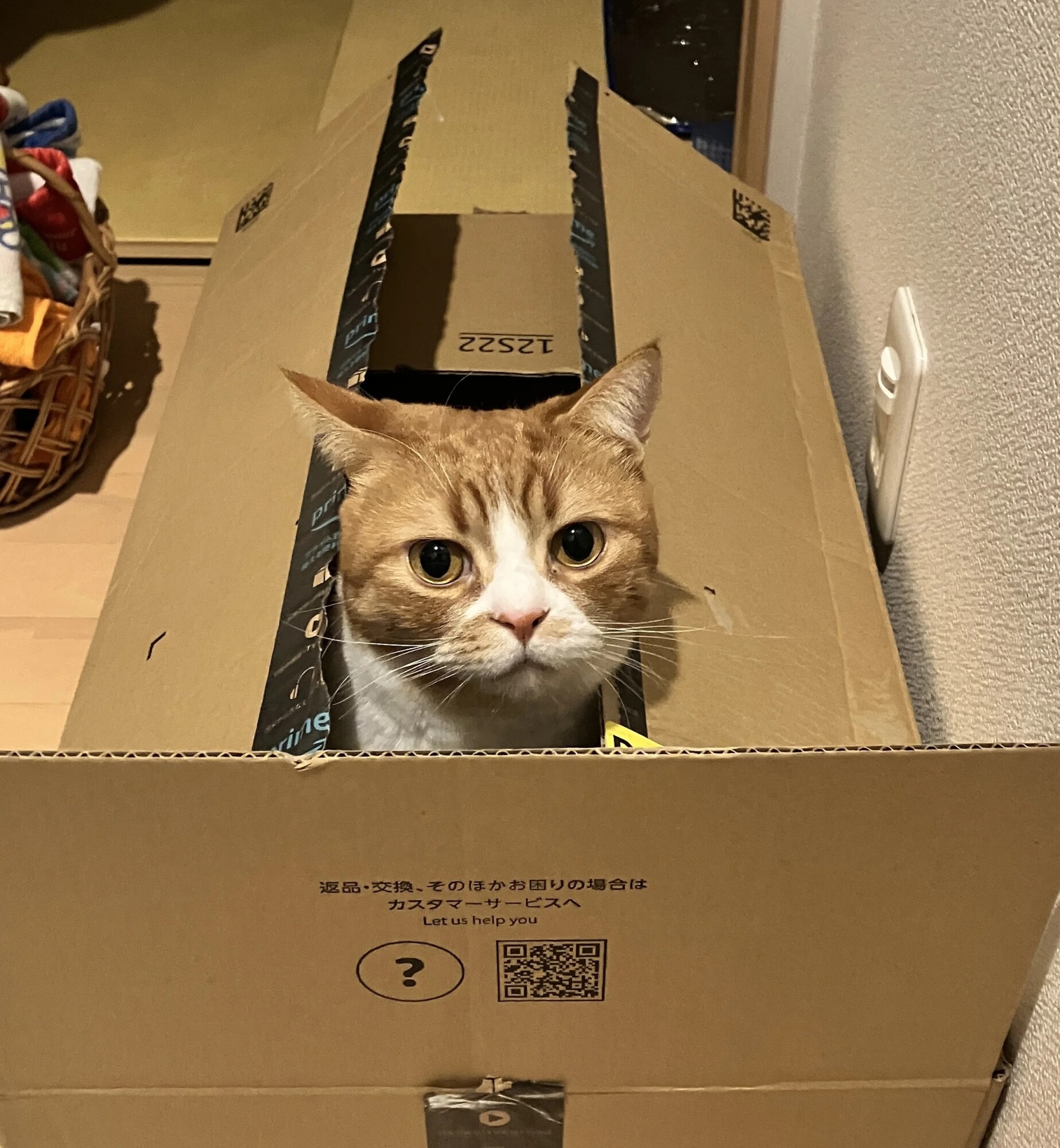 どんな段ボールでも、とりあえず一度入らないと気が済まないミルキー