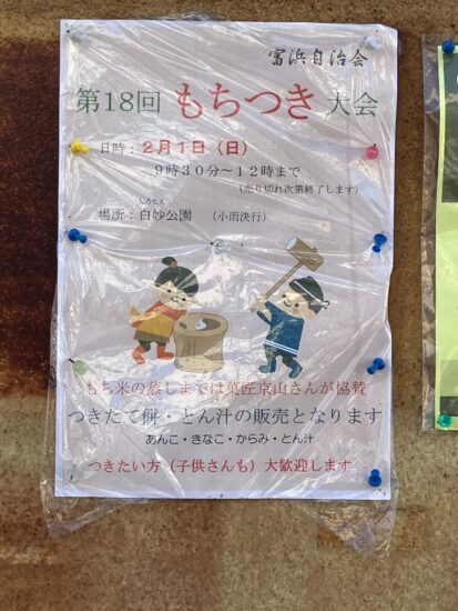 2/1(日)富浜自治会「餅つき大会」 老舗和菓子店「京山」さんが協賛【行徳】