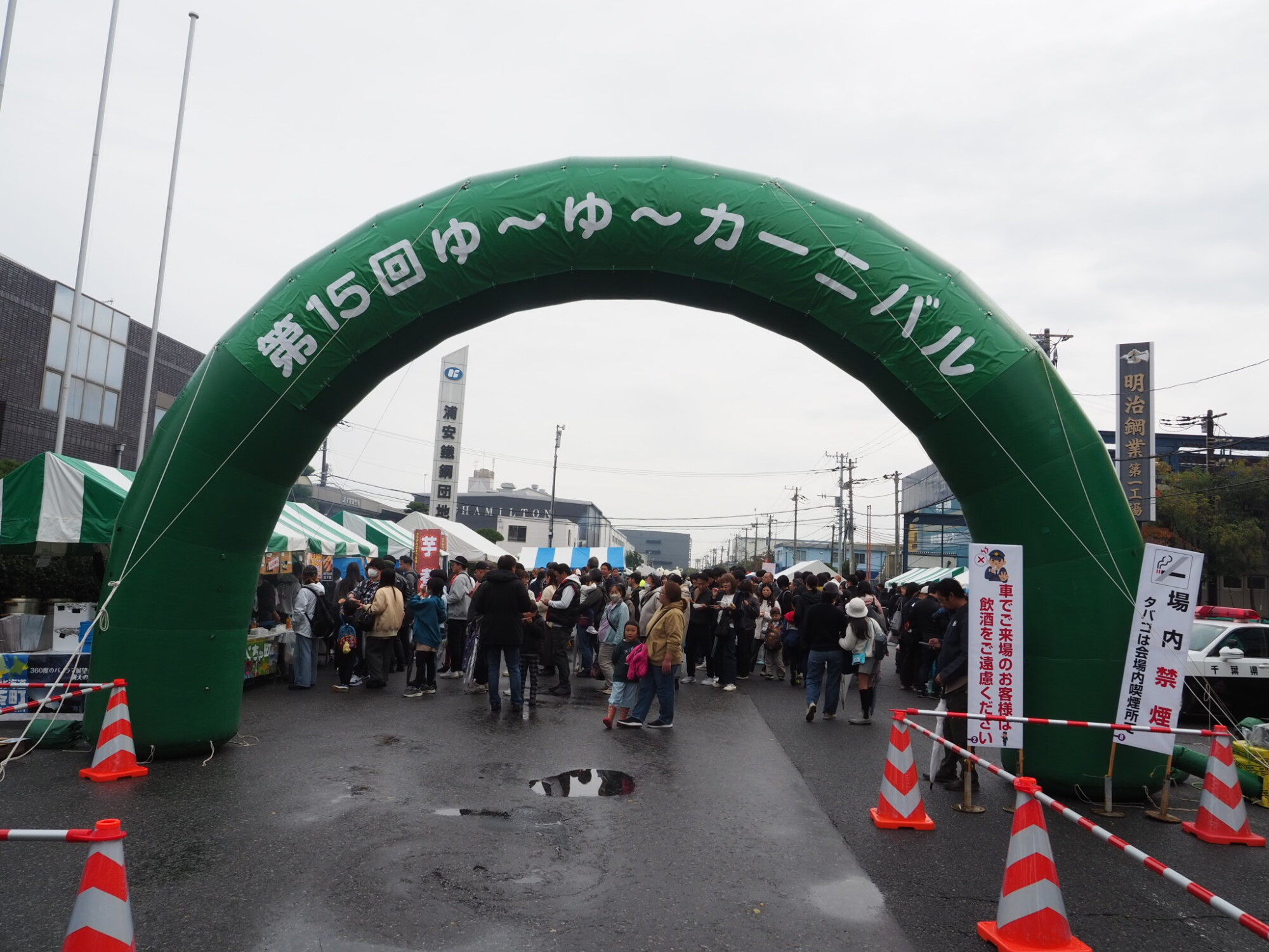11月9日(日)、浦安鉄鋼団地で、「第15回ゆ~ゆ~カーニバル」(浦安鉄鋼団地協同組合主催)が開催された。あいにくの雨の中のスタートとなったが、途中天候も回復し、親子連れなど多くの人が集まった。