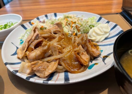 今日のランチは、やよい軒の定番メニュー『しょうが焼き定食』。「やっぱりこれでしょ」というお味。タレがおいしくて大好きです。山盛りのキャベツも魅力。量も私にとっては丁度よく、お腹いっぱいになりましたが、たくさん食べたい人には物足りないかも。ご飯はお替わり自由でした。