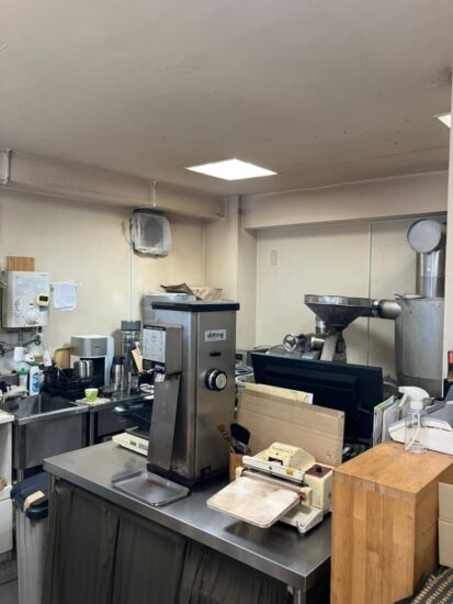 以前からの気になっていたのですが、店内はちょうど焙煎中で珈琲豆焙煎の強い香りと煙が漂っていてコーヒー好きのわたしとしては至福の空間♪ 店内にはさまざまな産地の珈琲豆を季節や気温に合わせて焙煎されるという。