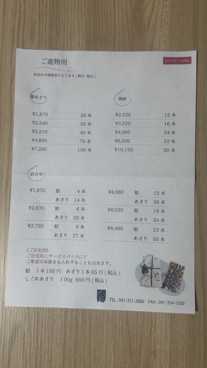 浦安名物として昔ながらの味わいが楽しめる焼きあさりは、大人だけでなく子どもにも好評。贈答用のセットもあり、年末年始などは前もって注文しておくと安心です。浦安土産としても、家族用のおやつとしても重宝する一品でした。