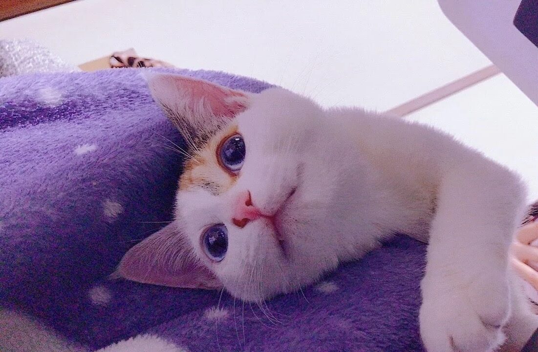 ビー玉のような青い目にピンクの鼻がとってもかわいいきなこちゃん。