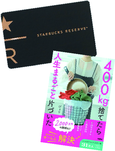 参加者全員に、スターバックスカード1,000円分&ぴょりさんの著書「400㎏捨てたら人生まるごと片づいた」をプレゼント!