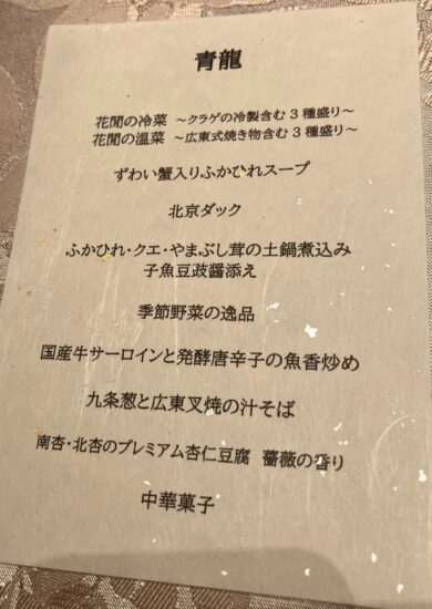浦安ブライトンホテル東京ベイの中国料理花閒の『青龍』は50代女子がペロリといける中華ディナーコース。