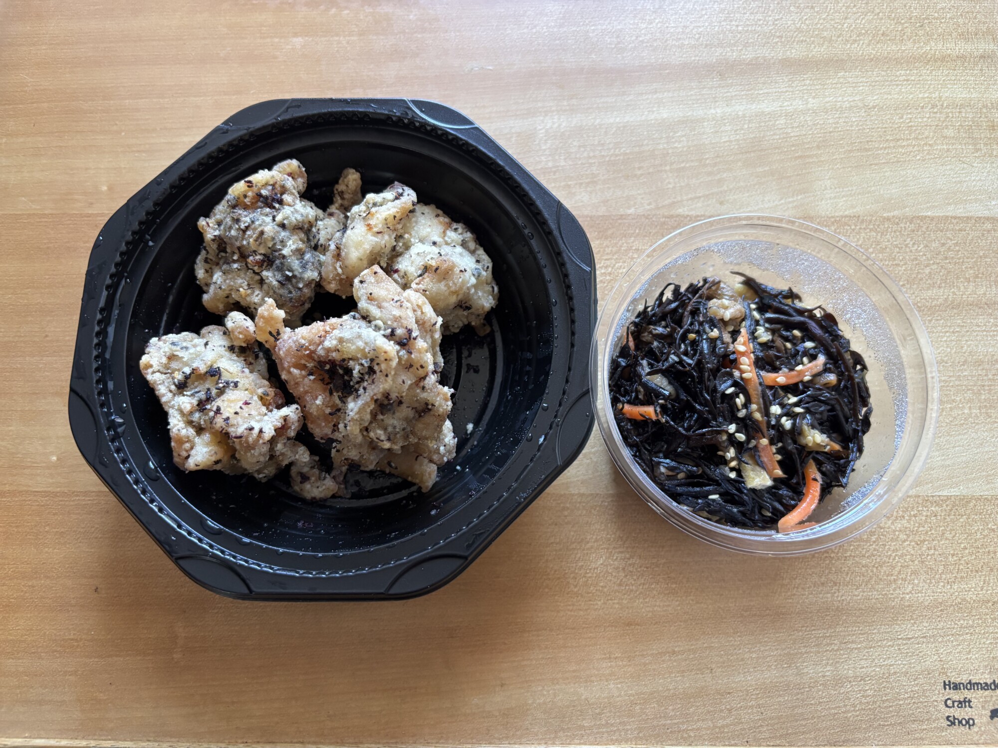 購入したのは「梅ゆかり唐揚げ」と「ひじき煮」。