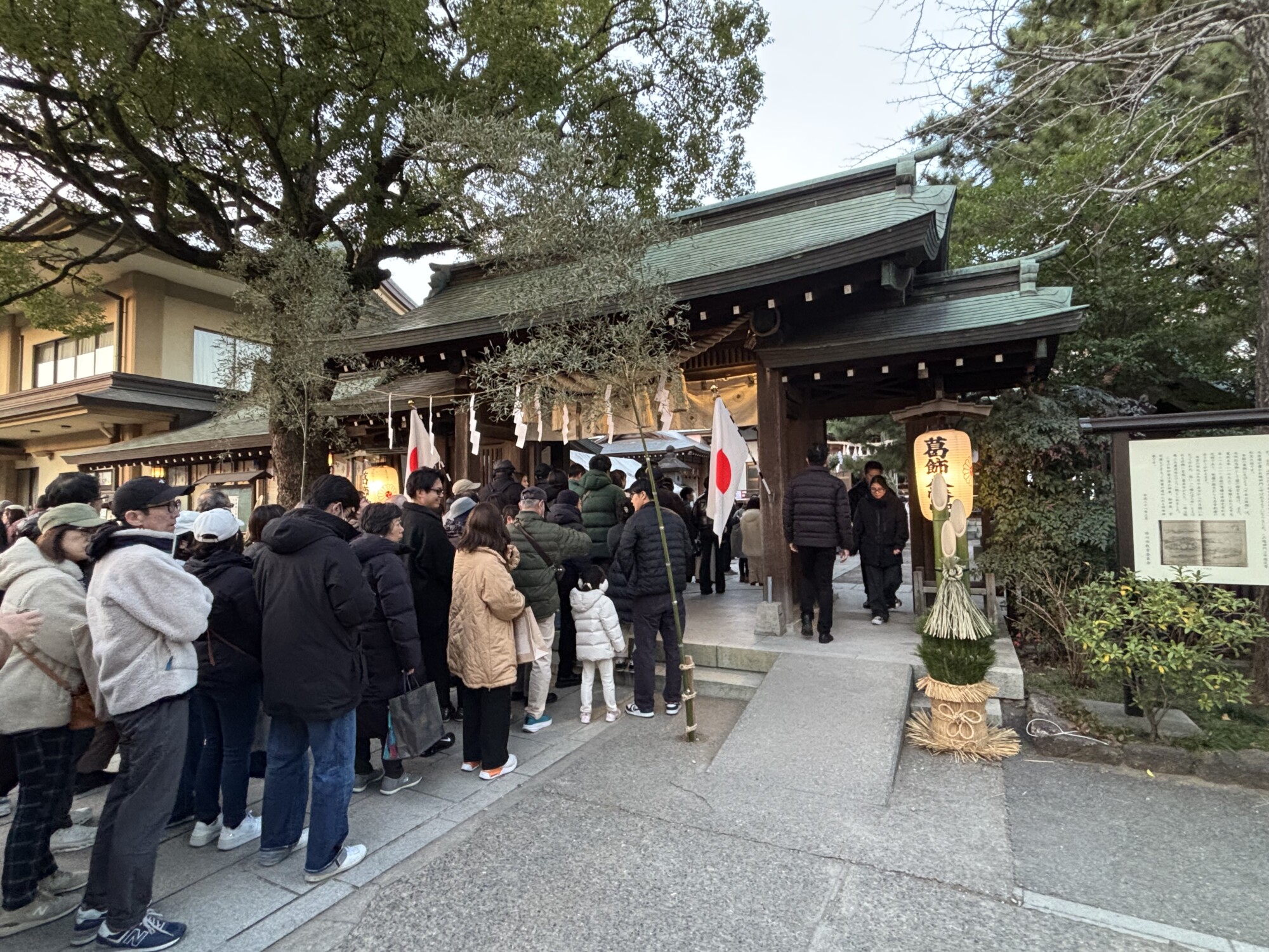 元旦は例年通り長蛇の列ができ、参拝時間終了が近づく夕方には駆け込みで訪れる人の姿も。