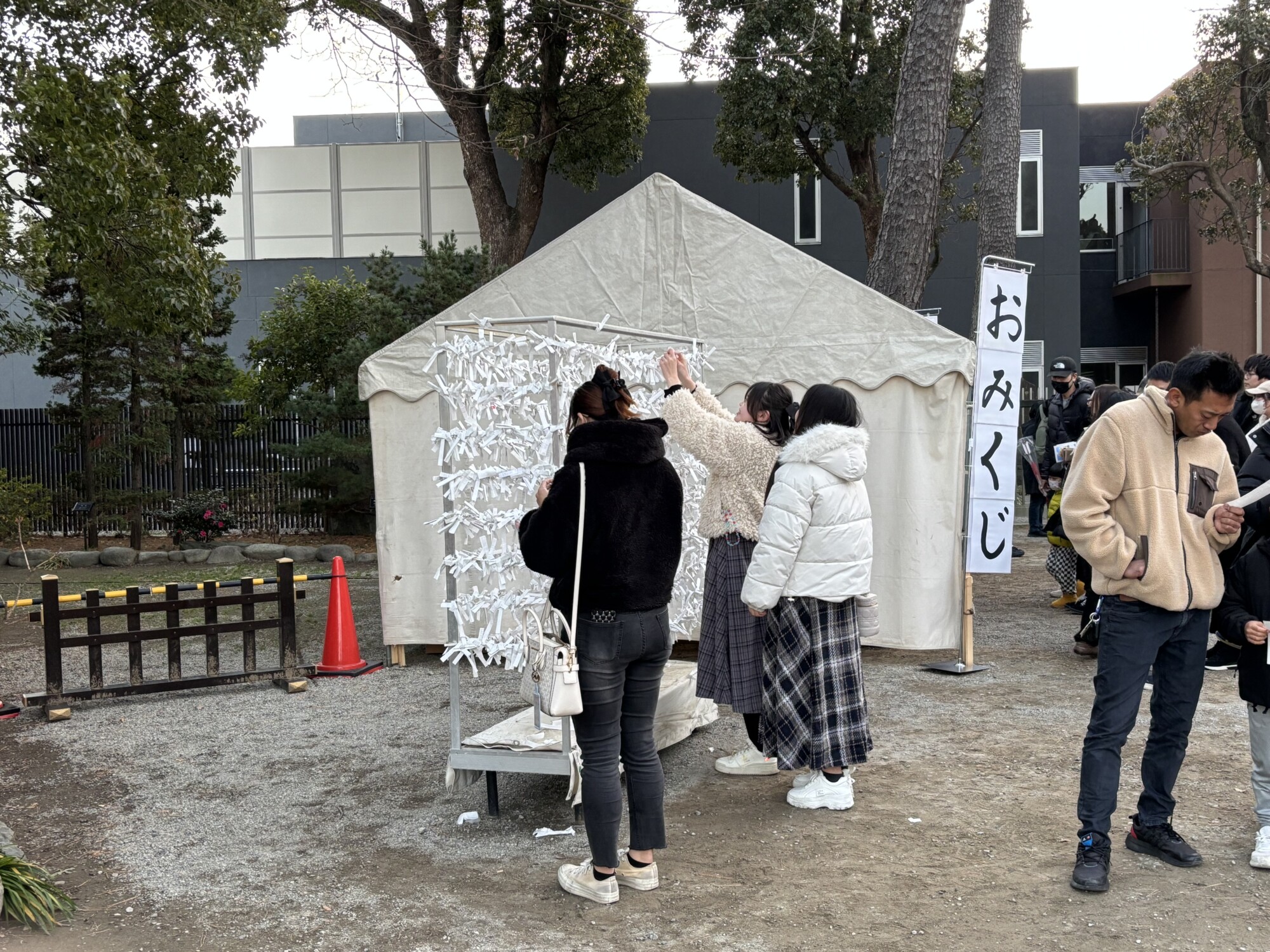 おみくじの結果に一喜一憂した後は、境内の結び所に願いを託していました。