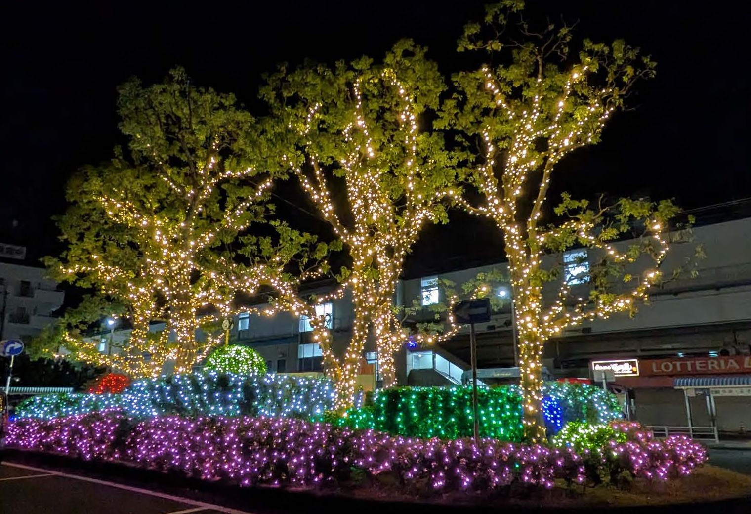 南行徳駅前はロータリー中央に色とりどりの大きなイルミネーションがあり、冬の駅前を明るく彩っている。