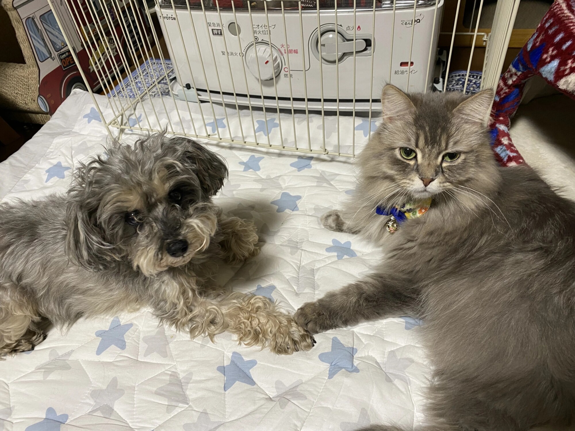あずき(左)とゴエモン(右)。今日は一時休戦中です。