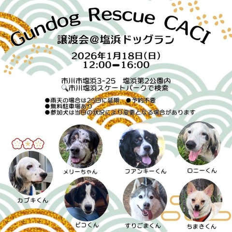 この譲渡会は、市川市にシェルターを構え鳥猟犬専門に救済しているボランティア団体「コンパニオンアニマルクラブ市川(CACI)」が主催し、毎月第3日曜日に定期的に開催している。今年度は他に、2/15(日)、3/15(日)も開催予定。