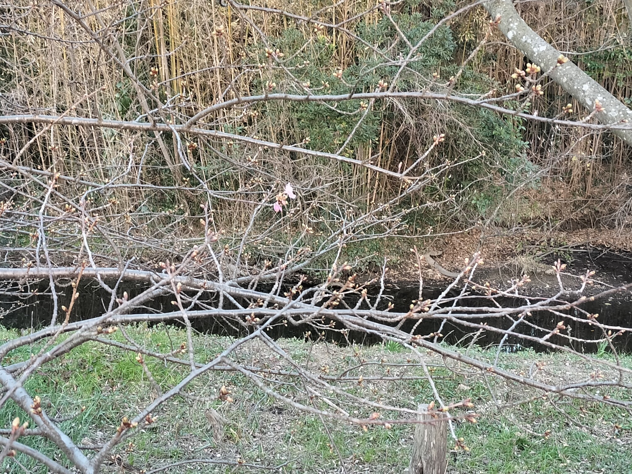 河津桜もよく見ると蕾がふくらみつつある。