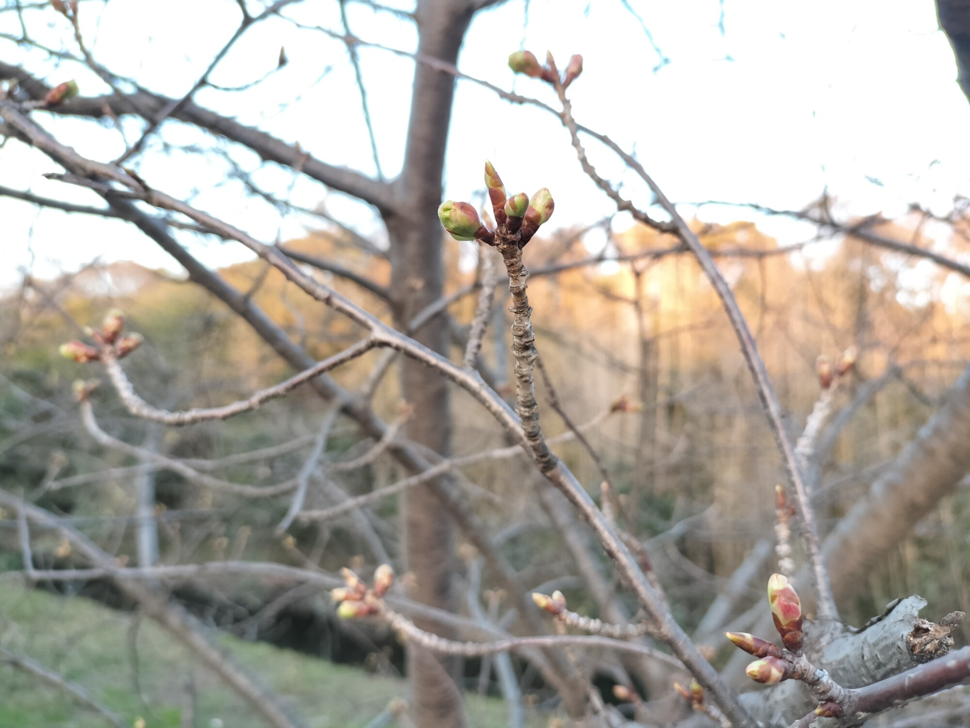 河津桜の蕾がふくらみ、春の足音を感じる