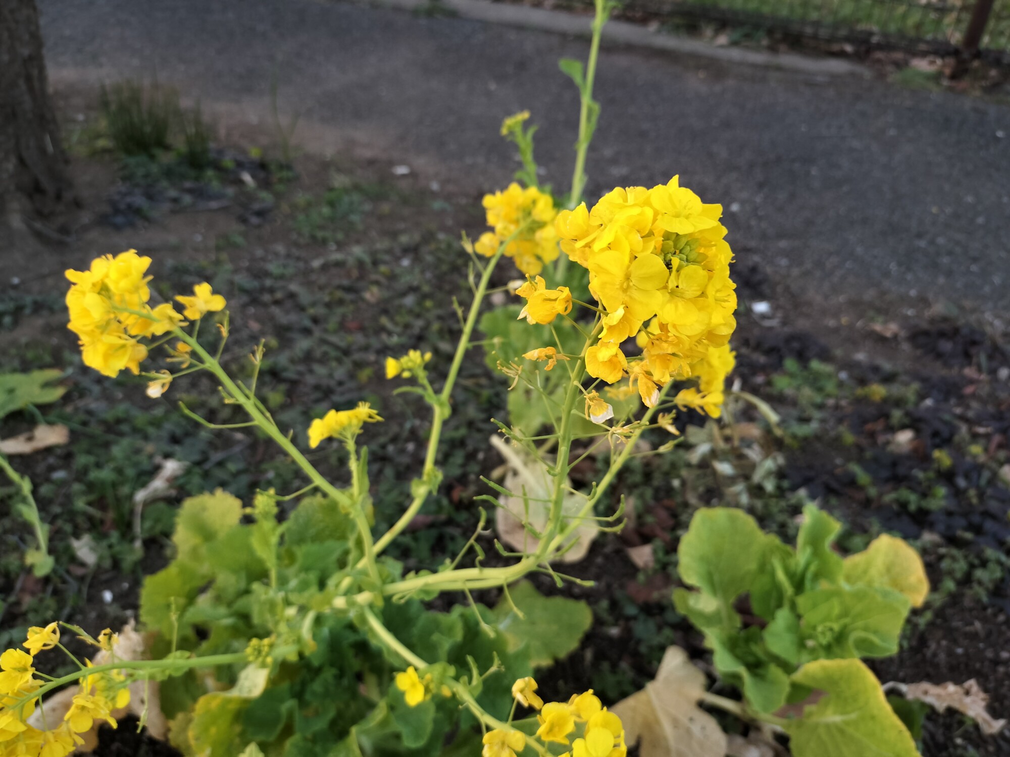 その塩浜橋近くの花壇には早くも菜の花が咲いている。