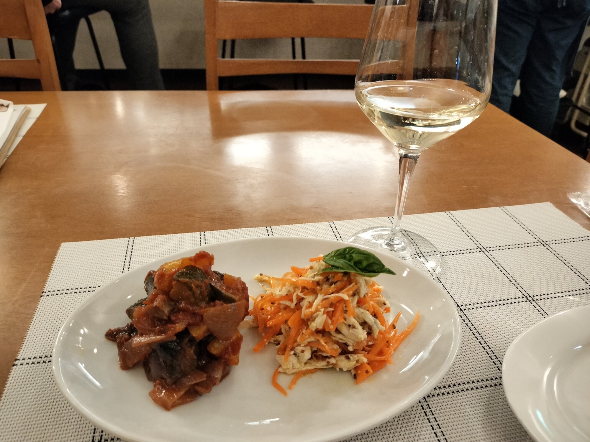 今日は、粒マスタードの酸味が効いた人参とささみのサラダと、野菜の甘みと旨味が活きたカポナータ(ラタトゥイユ)。