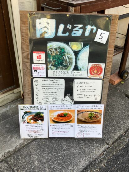 ということで、定番の肉じる定食と真冬じる(担々)定食をオーダー。九条ねぎたっぷりの透き通ったスープの肉じるは、しっかりと鰹の出汁が効いて、牛バラと牛すじで深みのある味。ちゃーんとご飯が進みます。卵をかけたり、七味をかけたり味変も楽しい。真冬じるは辛さが3段階から選べ、レベル1でも代謝の悪い私が食べ終わる頃には額にうっすら汗が。肉みそ、スープ、スープに浸っているご飯もうんまい! 辛いだけではないですよ~。