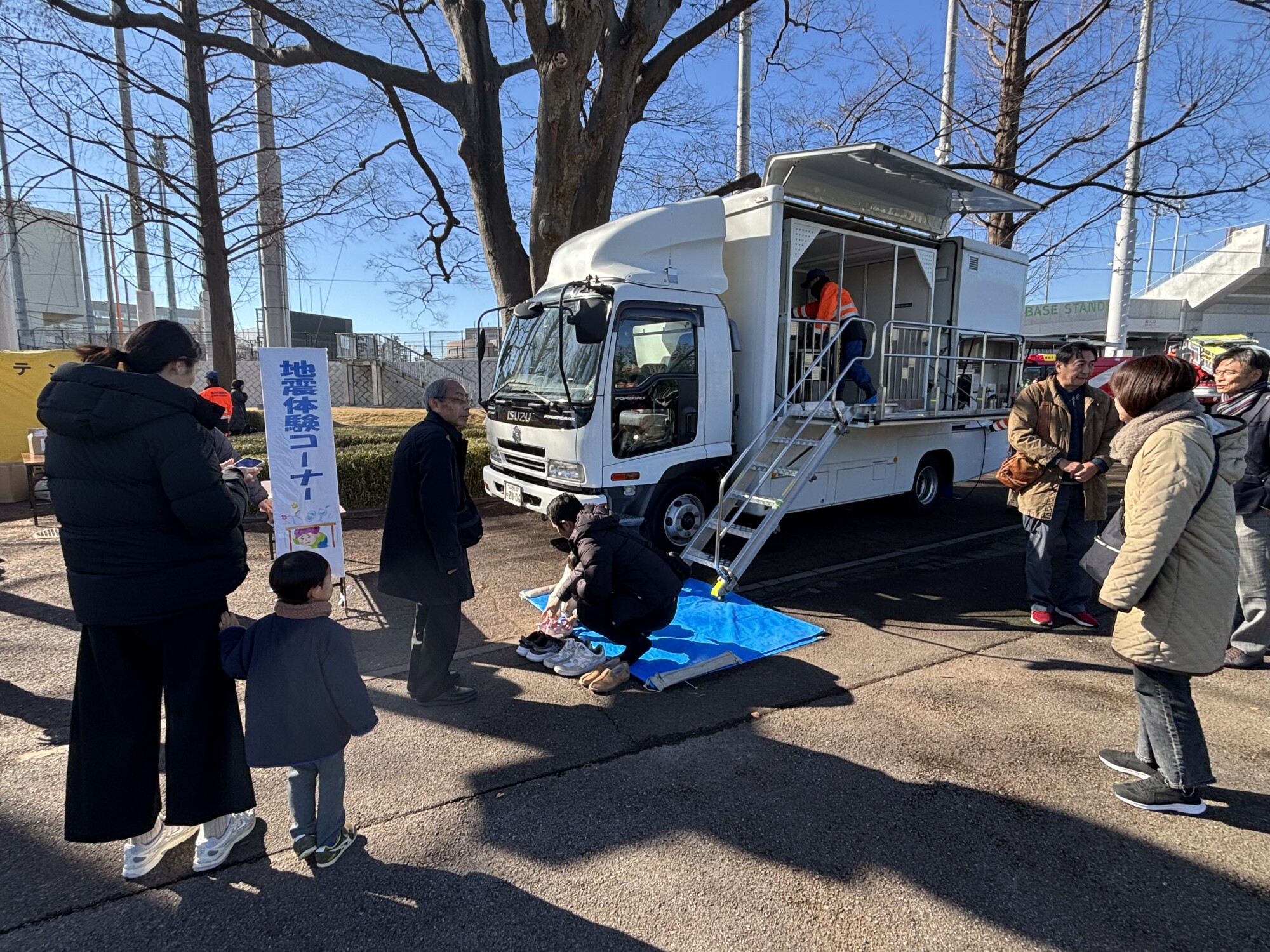 会場前広場には、地震体験車やはしご車などが登場。防災ブースも設けられ、多くの家族連れで賑わっていた。