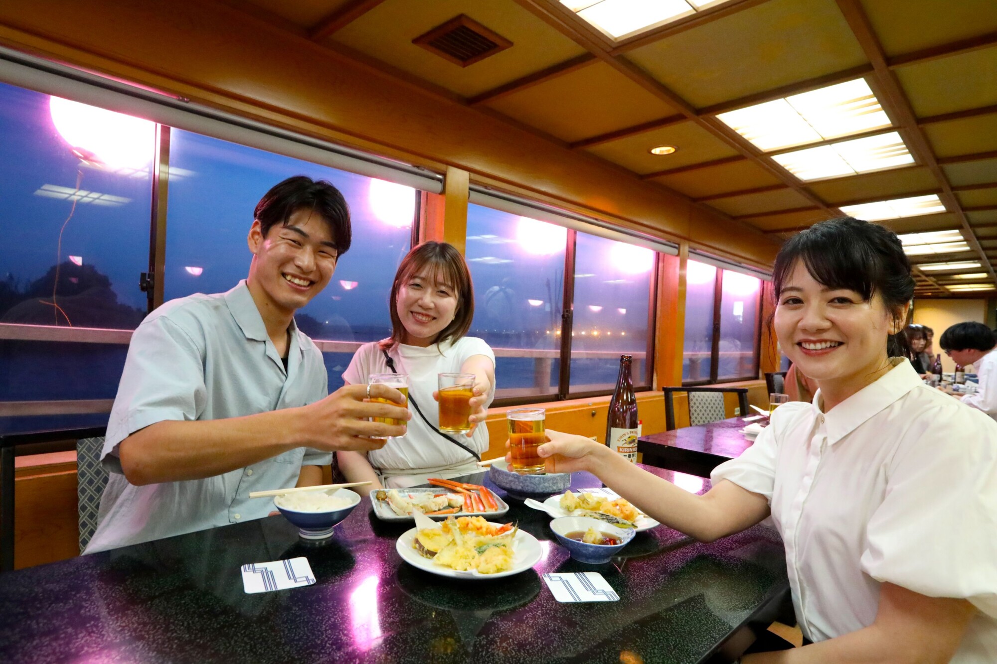 ※乗船料、お食事(天ぷら、お刺身盛合わせなど)、飲み放題(アルコール、ソフトドリンク)の金額(税込)を含みます。※乳幼児2,200円(食事なし)