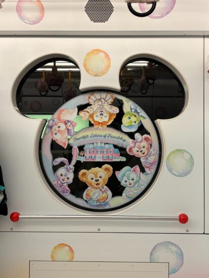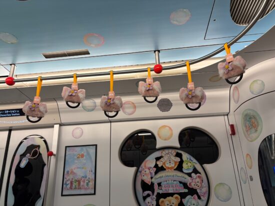 車内のつり革や窓、ポスターまでダッフィー仕様で、移動時間もイベントの一部のような特別感があります。