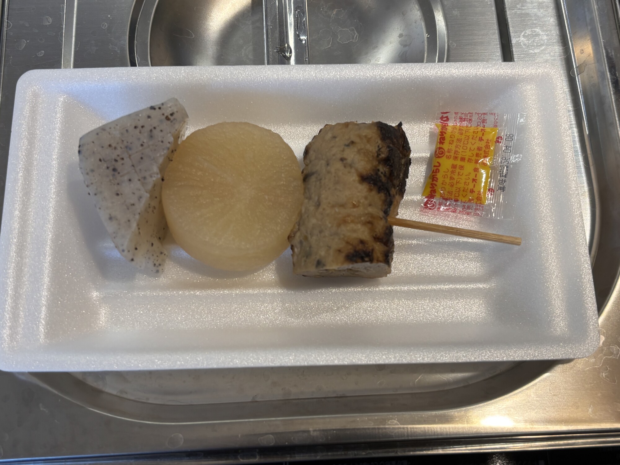 販売されたおでんの具材は、大根、こんにゃく、そして主役の「いちくわ」。