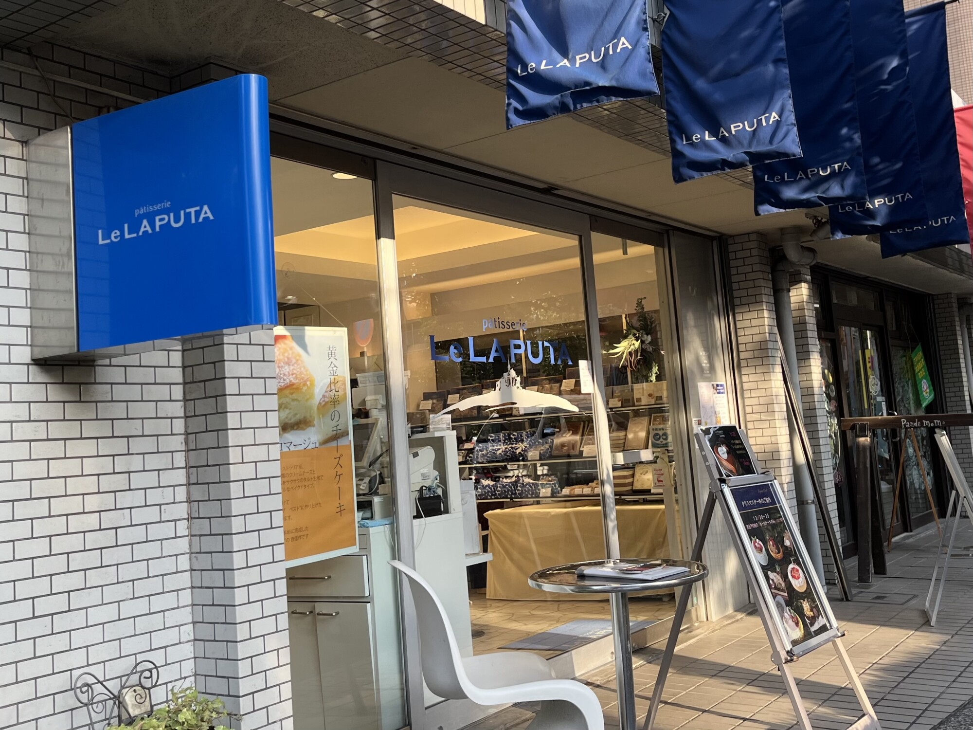 青と白のカラーの爽やかな「パティスリー ル・ラピュタ」は、西葛西駅から徒歩8分程にあります。