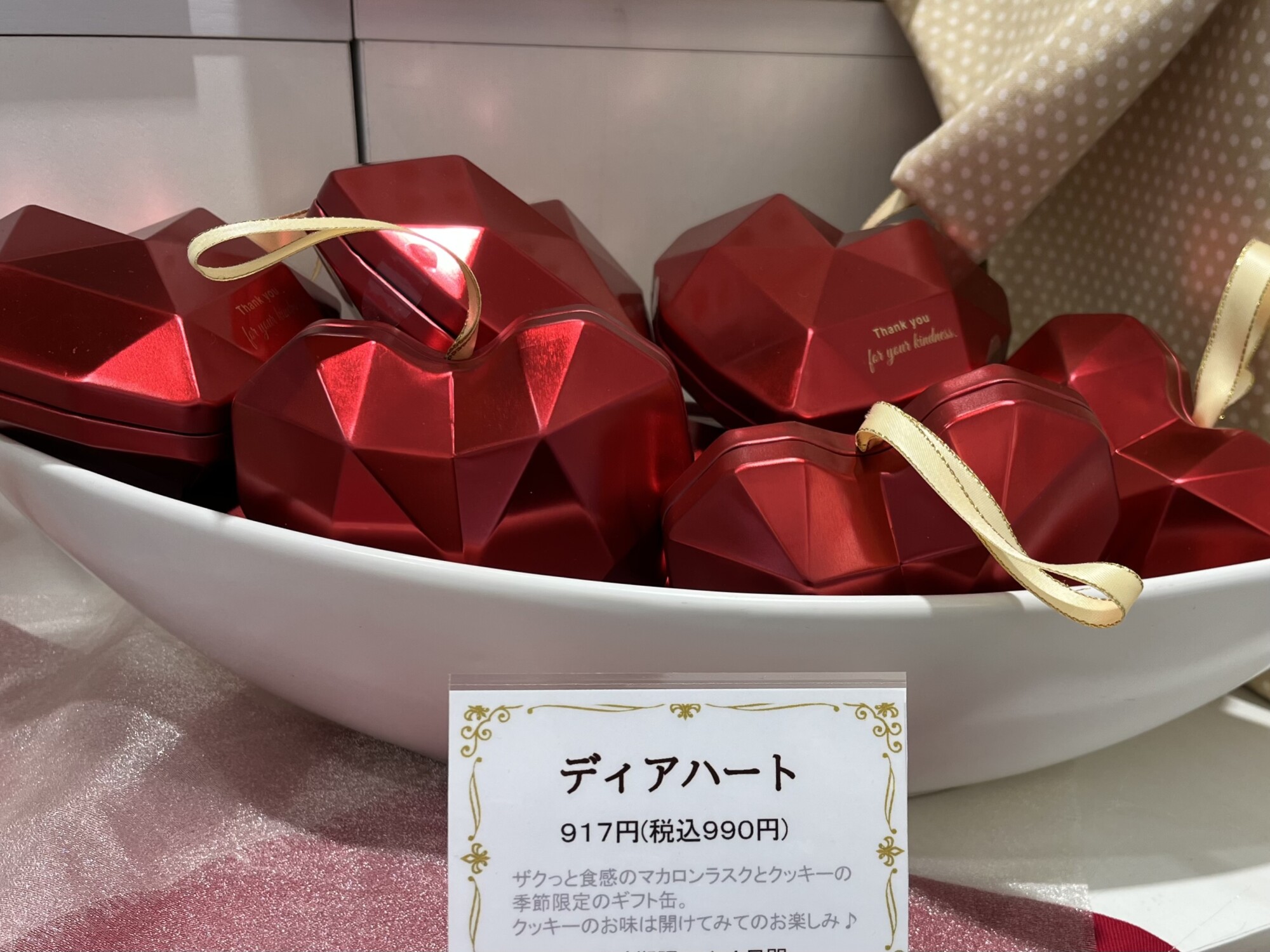 コロンとしたハート型が可愛いこちらは、マカロンラスクとクッキーのセット。何が入っているかは開けてからのお楽しみだそうです♪(期間限定)
