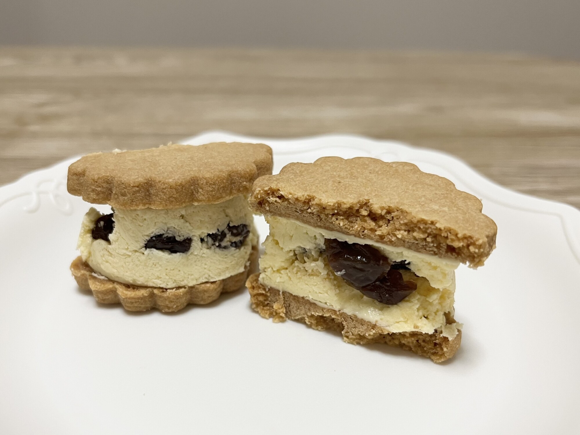 厚みのあるバタークリームにたっぷりのラムレーズンを入れ、サクサクのサブレでサンドした贅沢な逸品♪(期間限定)