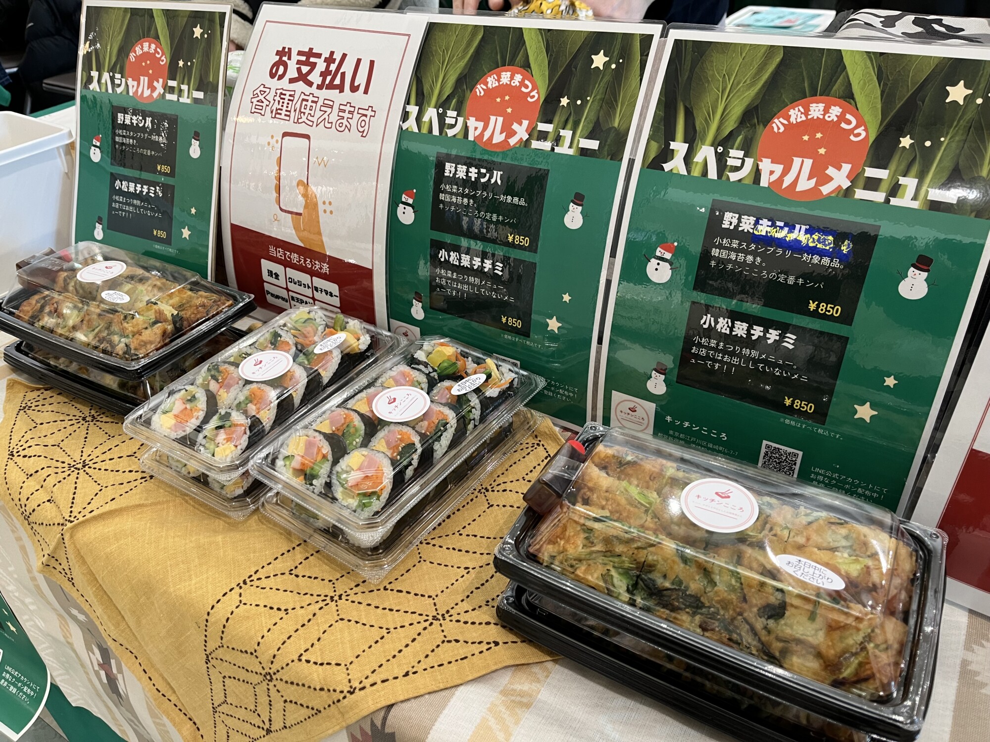美味しそうな小松菜料理がたくさんあって迷ってしまいましたが、今回は篠崎にある「キッチンこころ」の小松菜まつり限定販売のチヂミ(850円)を購入しました♪