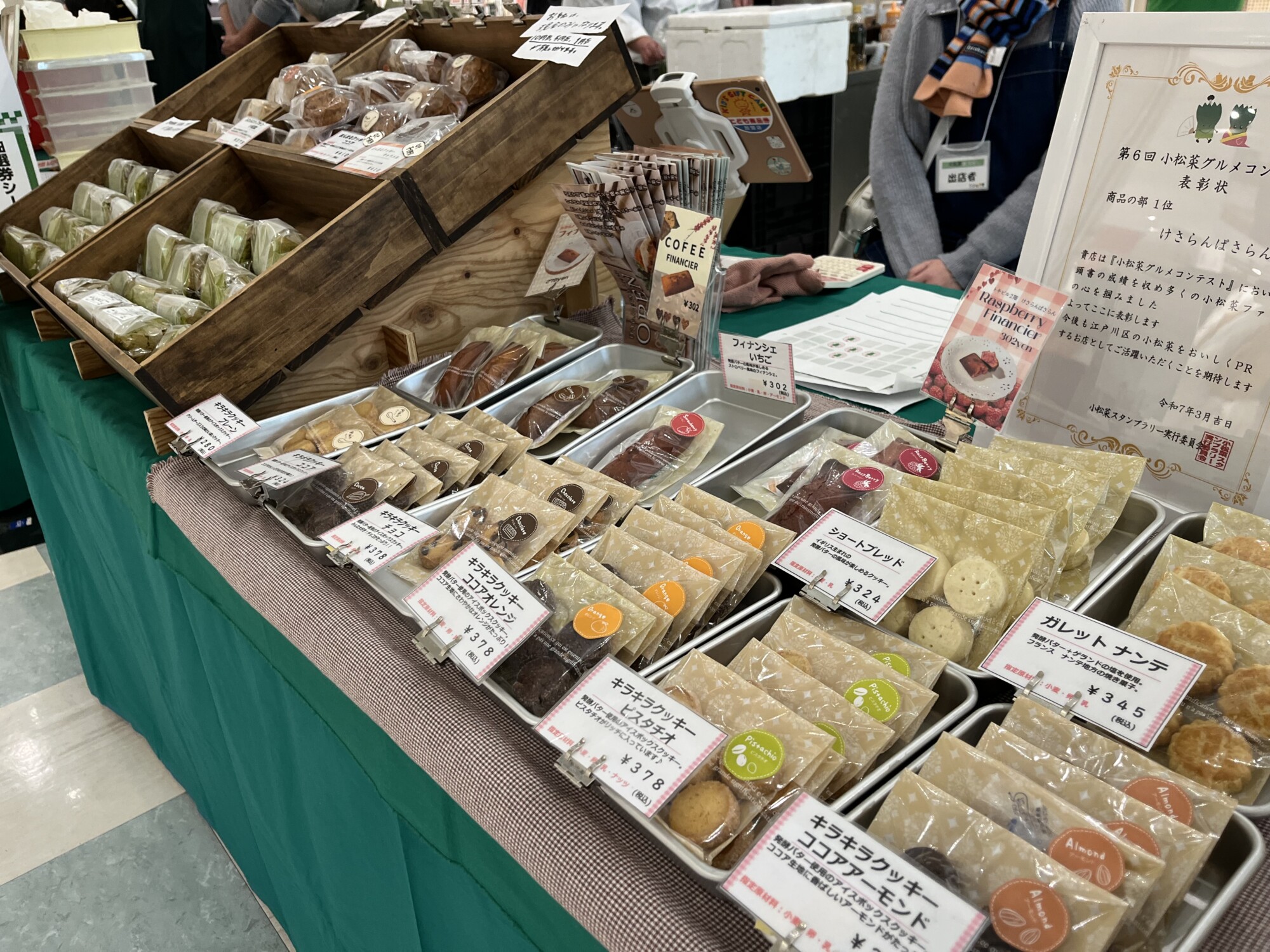 船堀の「けさらんぱさらん」のブースには、3年連続グルメコンテスト一位の小松菜のシフォンケーキや、フィナンシェなどの焼き菓子がたくさん並べられていました♪