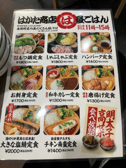 居酒屋さんのお昼は満足感たっぷり。今回はハンバーグ定食をいただきました。このお店は明太子と高菜が食べ放題!そして豚汁付。白飯がどんどんいけます。ハンバーグはお肉がぎっしりでガツンと来る系。腹ペコ女子にお勧めです。