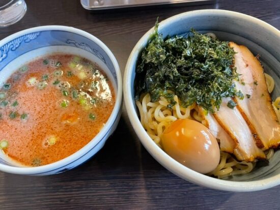 特製濃厚つけそばは、濃厚スープにコシのある中太麺が相性抜群。香ばしいチャーシューと味玉も満足感たっぷりです。