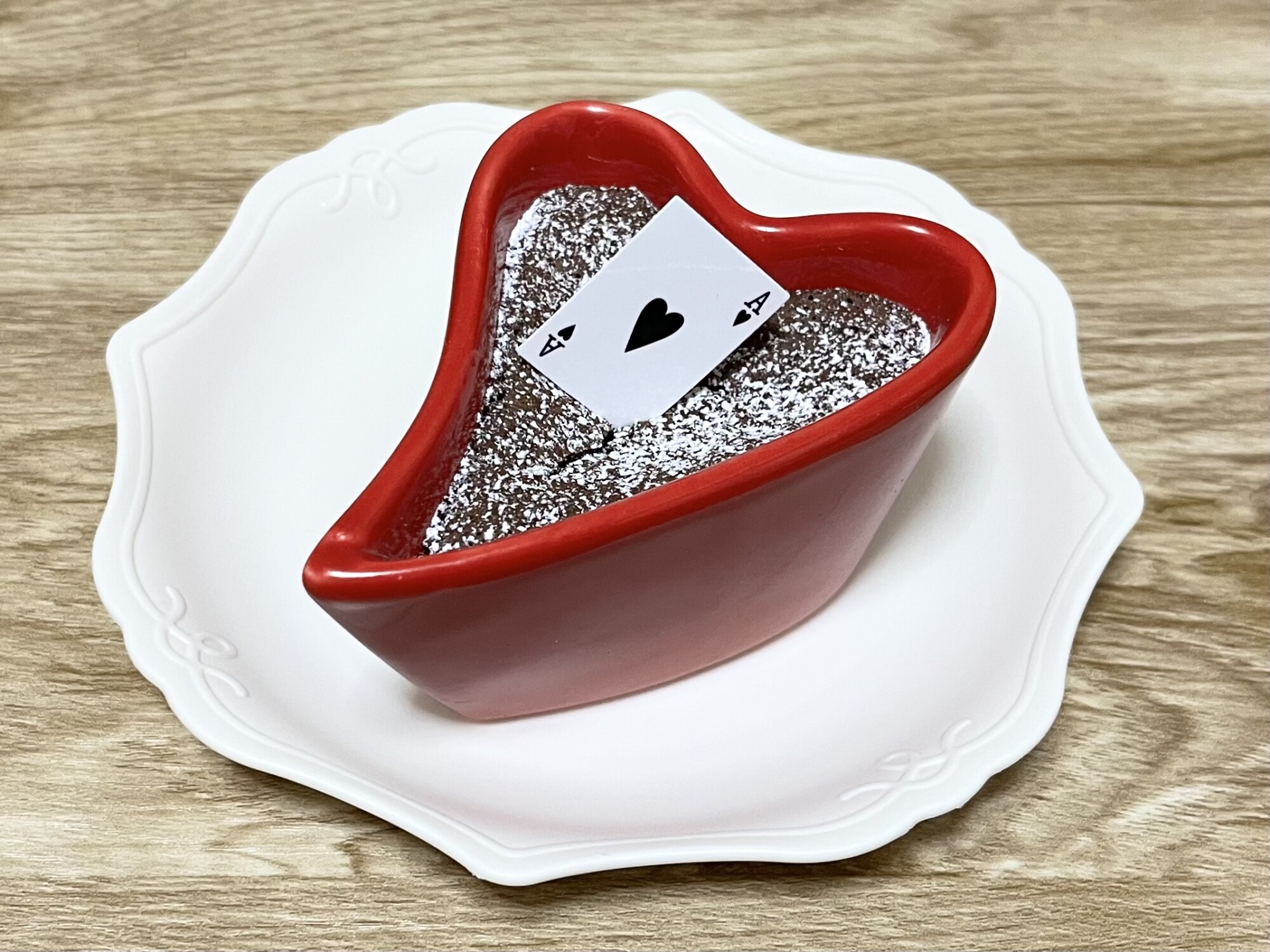 特徴: 陶器製の真っ赤なハートと小さなトランプが添えられた、見た目も華やかな一品。