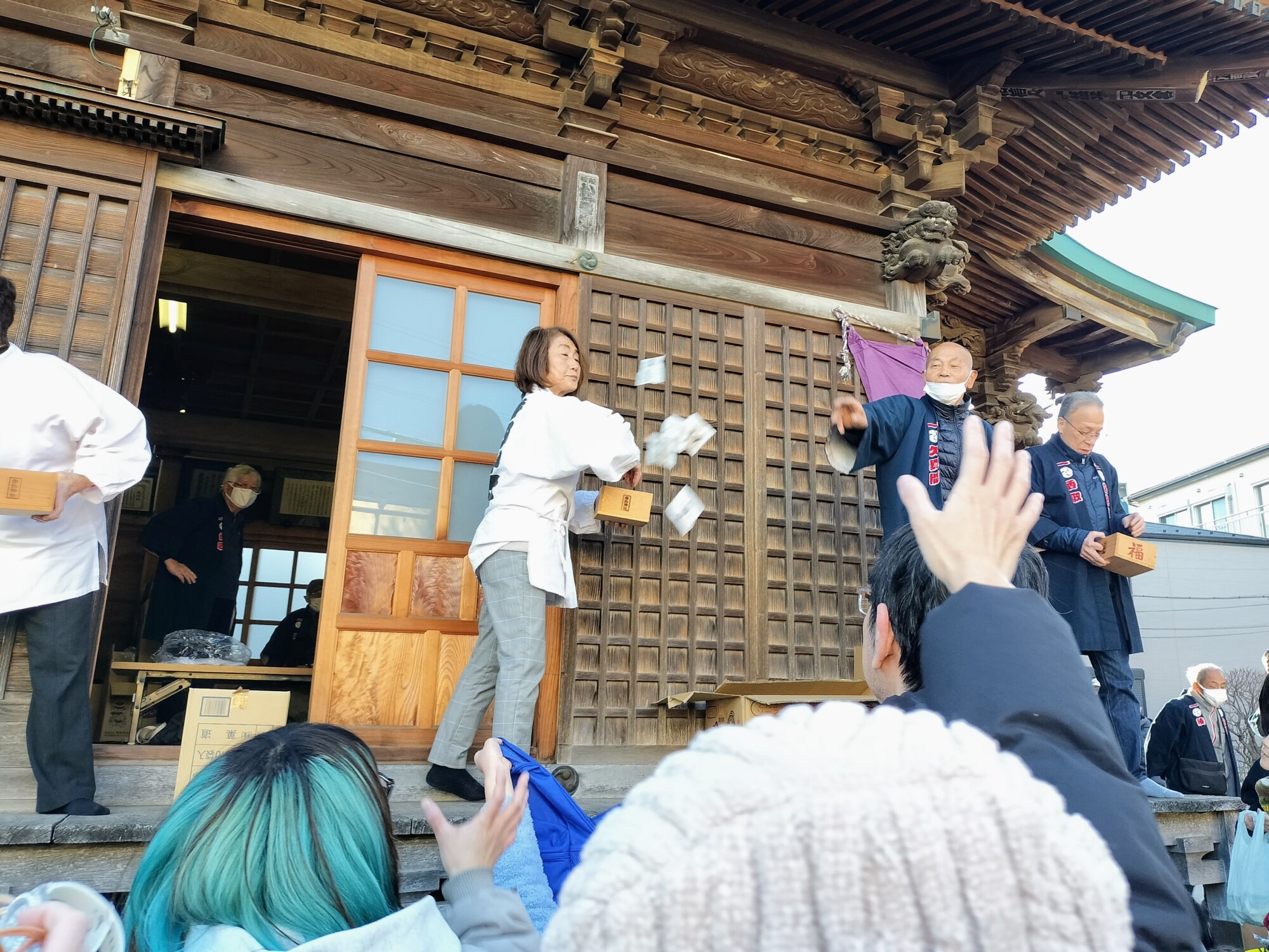 「人が多くてうまく取れなかった……」という方もご安心を 。 日枝神社では、豆まき終了後に、うまく受け取れなかった人たちのために神職の方が手渡しで配ってくれる時間がありました 。