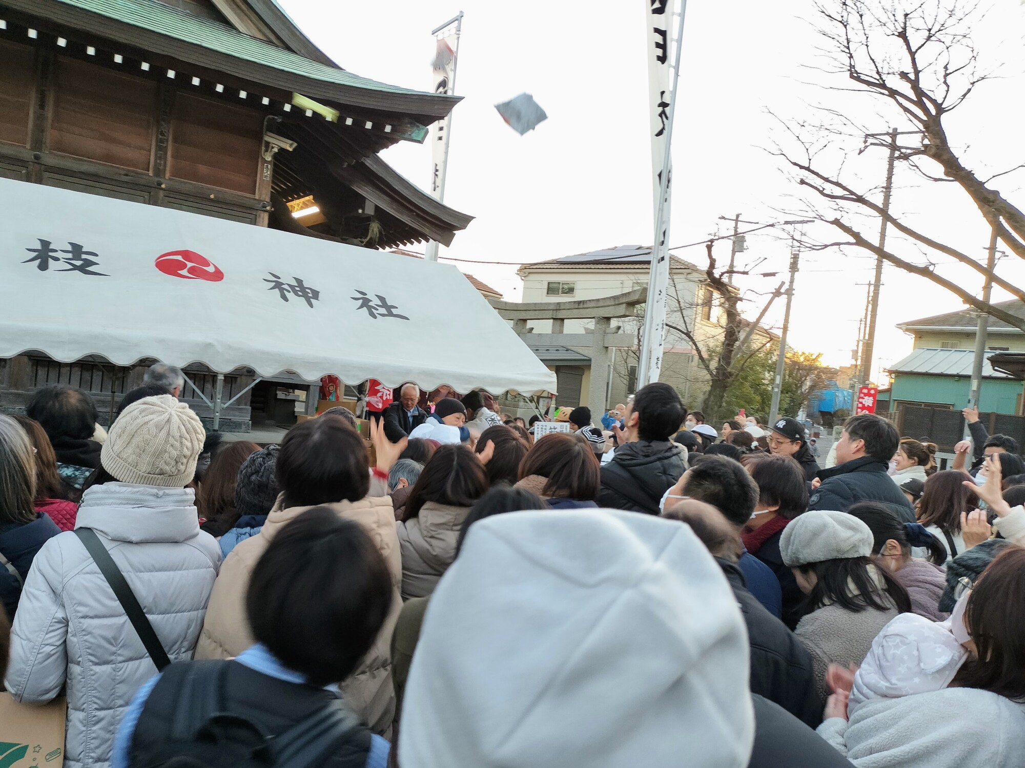 2月3日の「節分の日」、市川市行徳エリアにある香取神社と日枝神社にて節分祭が執り行われました 。 当日は神事のほかに、恒例の「豆まき(菓子まき)」が実施され、多くの参拝客で境内が熱気に包まれました 。