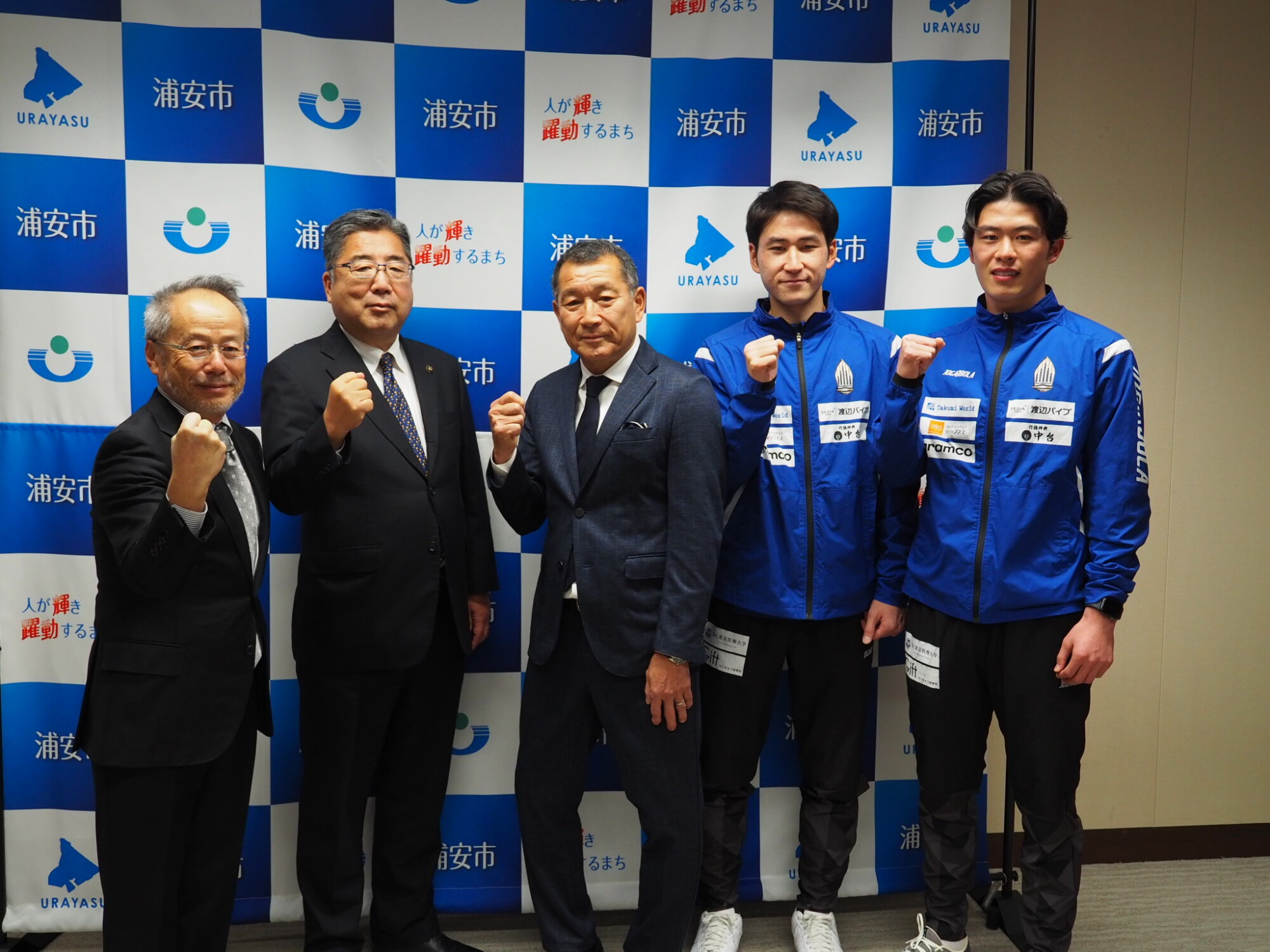 谷口代表は「2025シーズン、目標としていた3位となり、表彰台に上がることができました」と報告。内田市長は「サッカーに取り組む子どもたちをはじめ、浦安市民に明るいニュースを届けていただき感謝している。来季もチーム一丸となって市民に希望を与える活躍をお願いしたい。期待しています」と激励した。