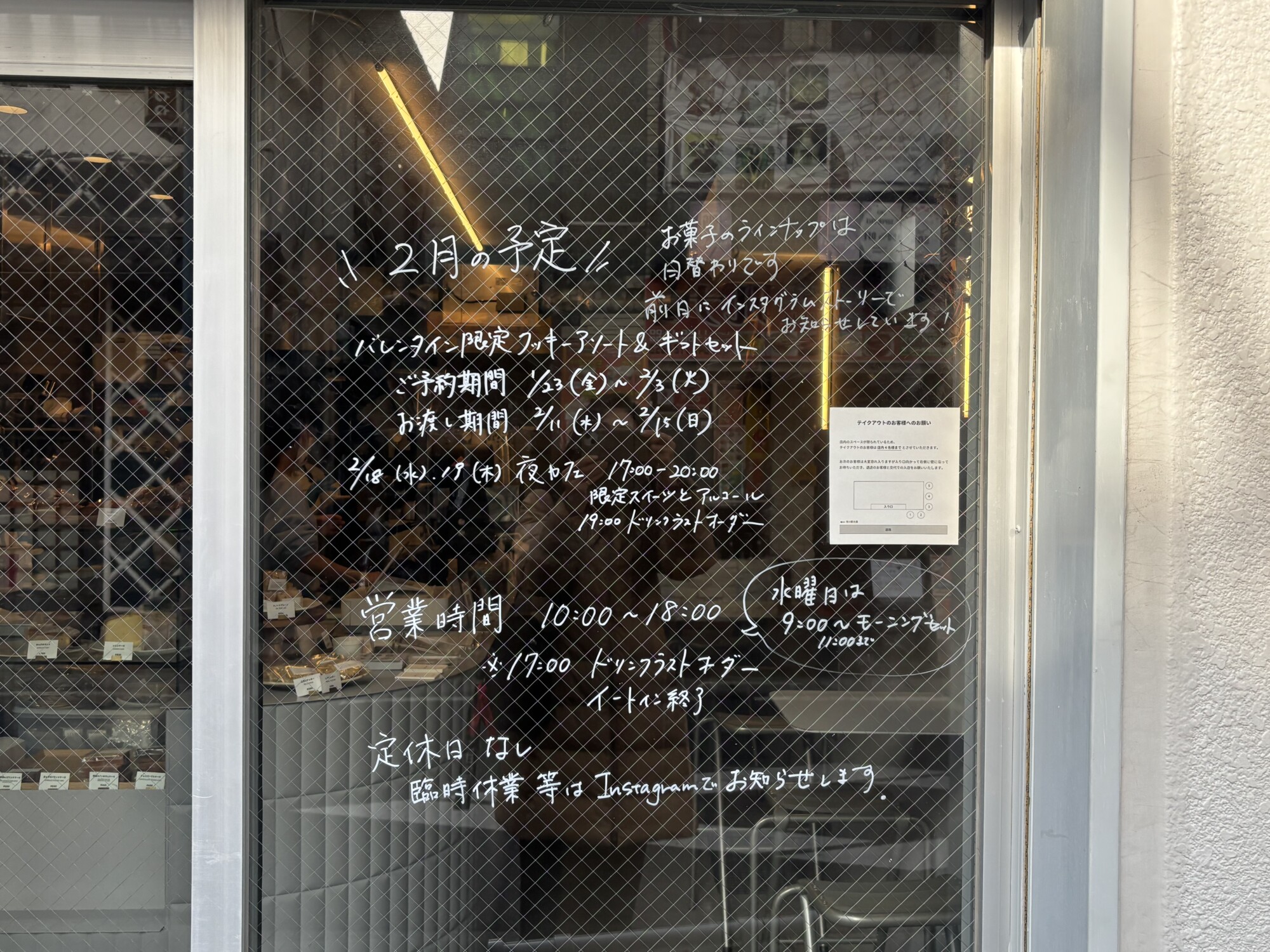 18:00まで焼き菓子の持ち帰り対応をしていますが、なくなり次第閉店となります 。
