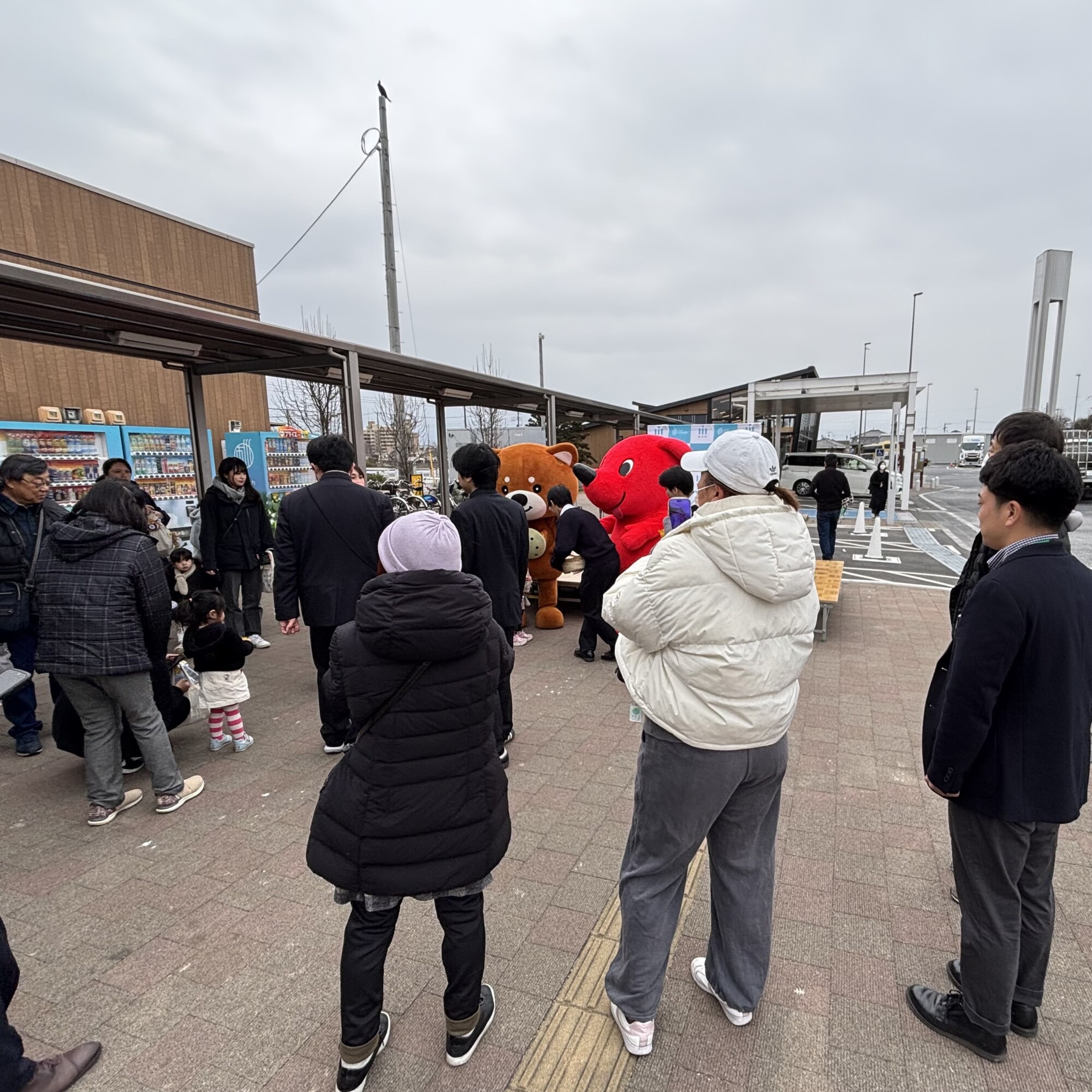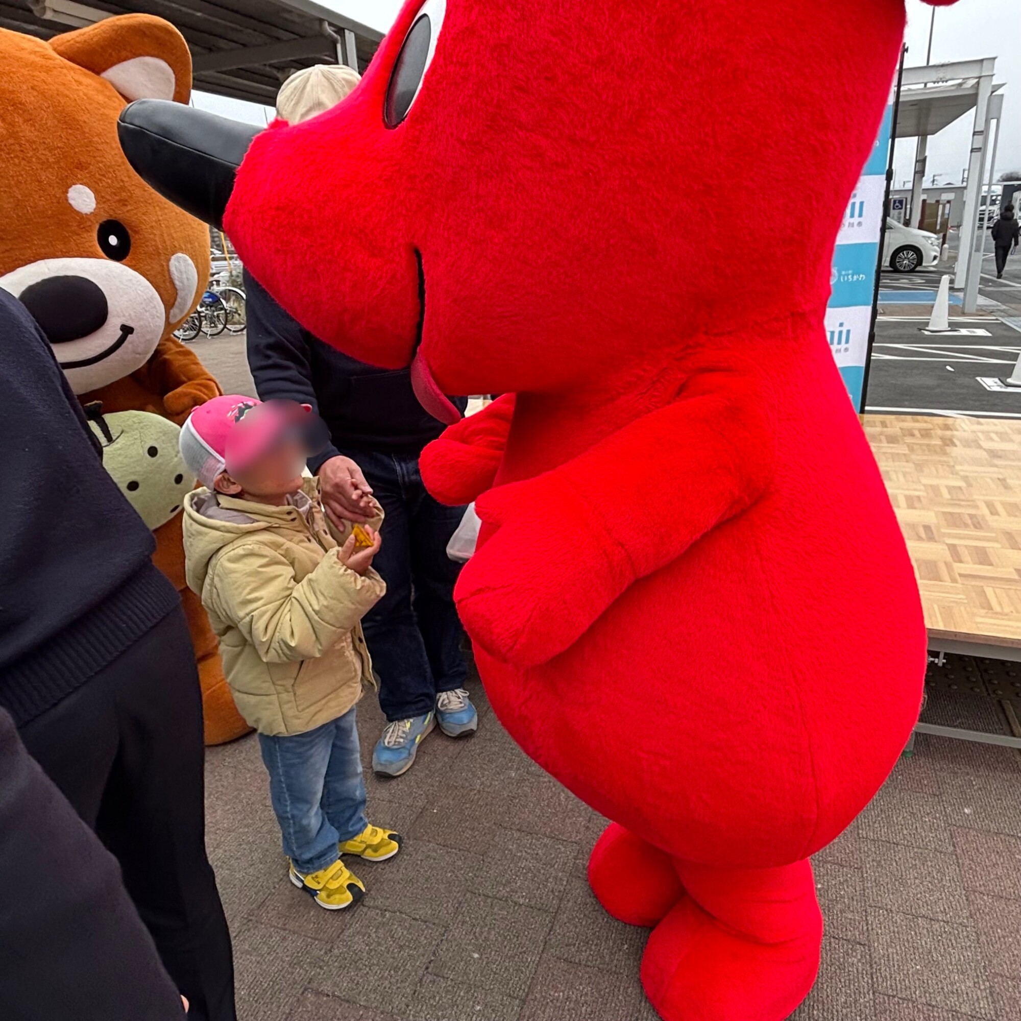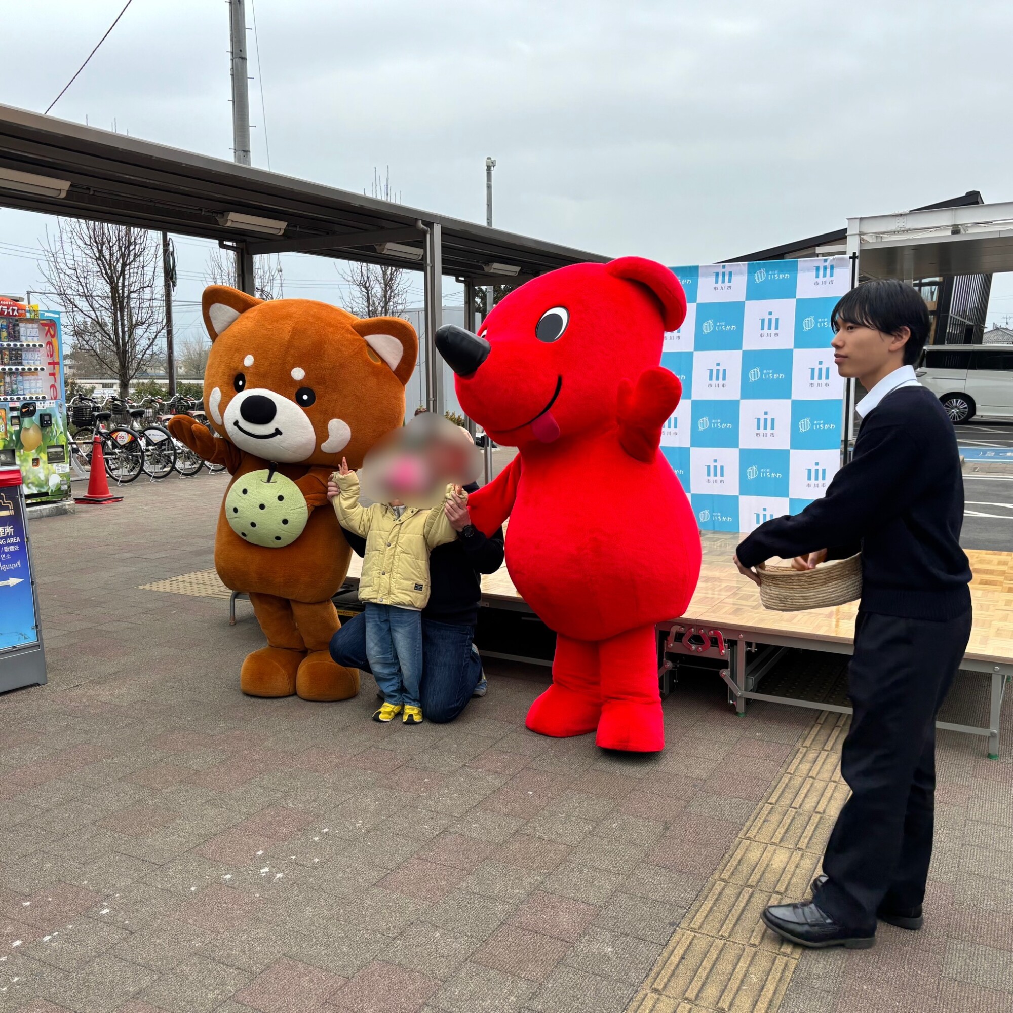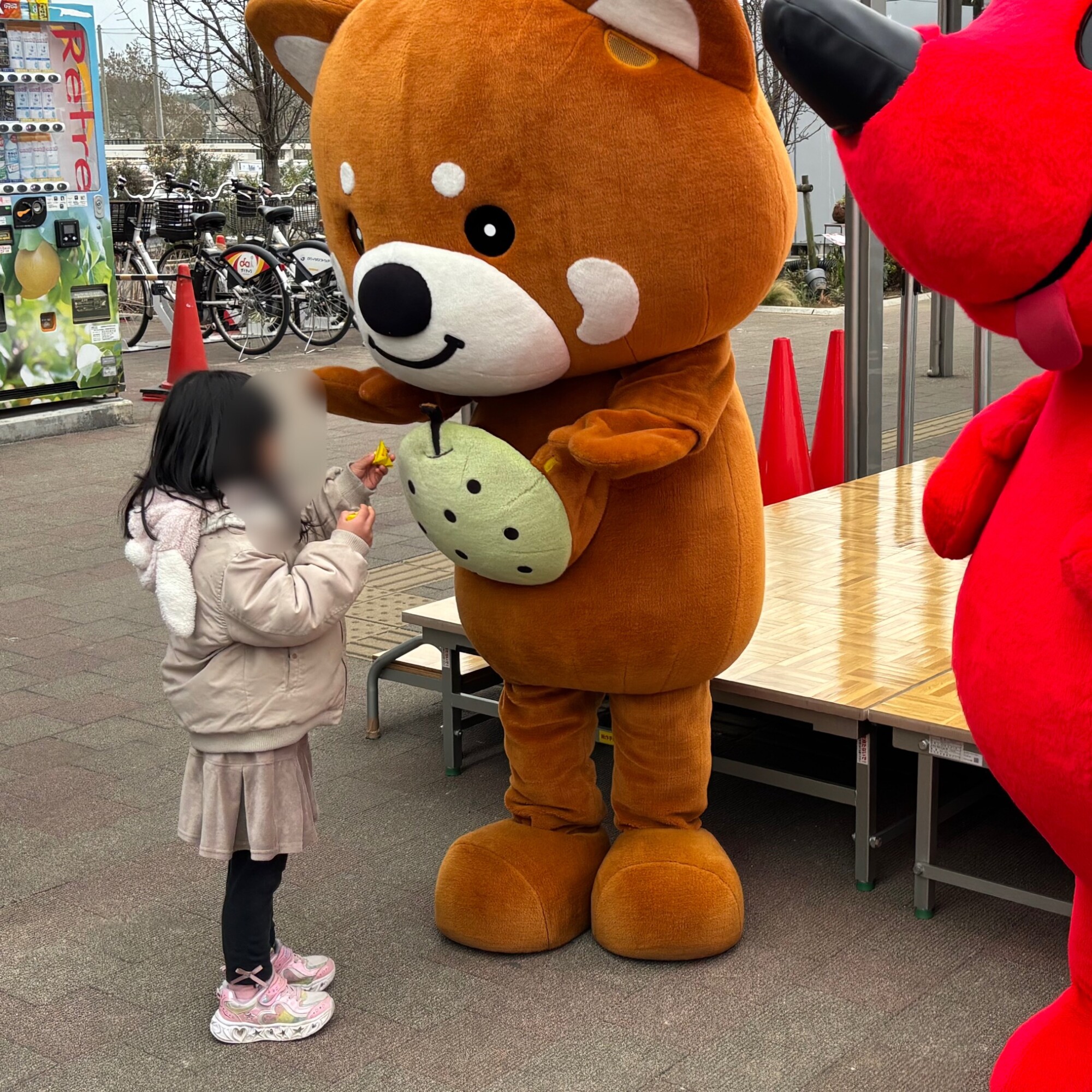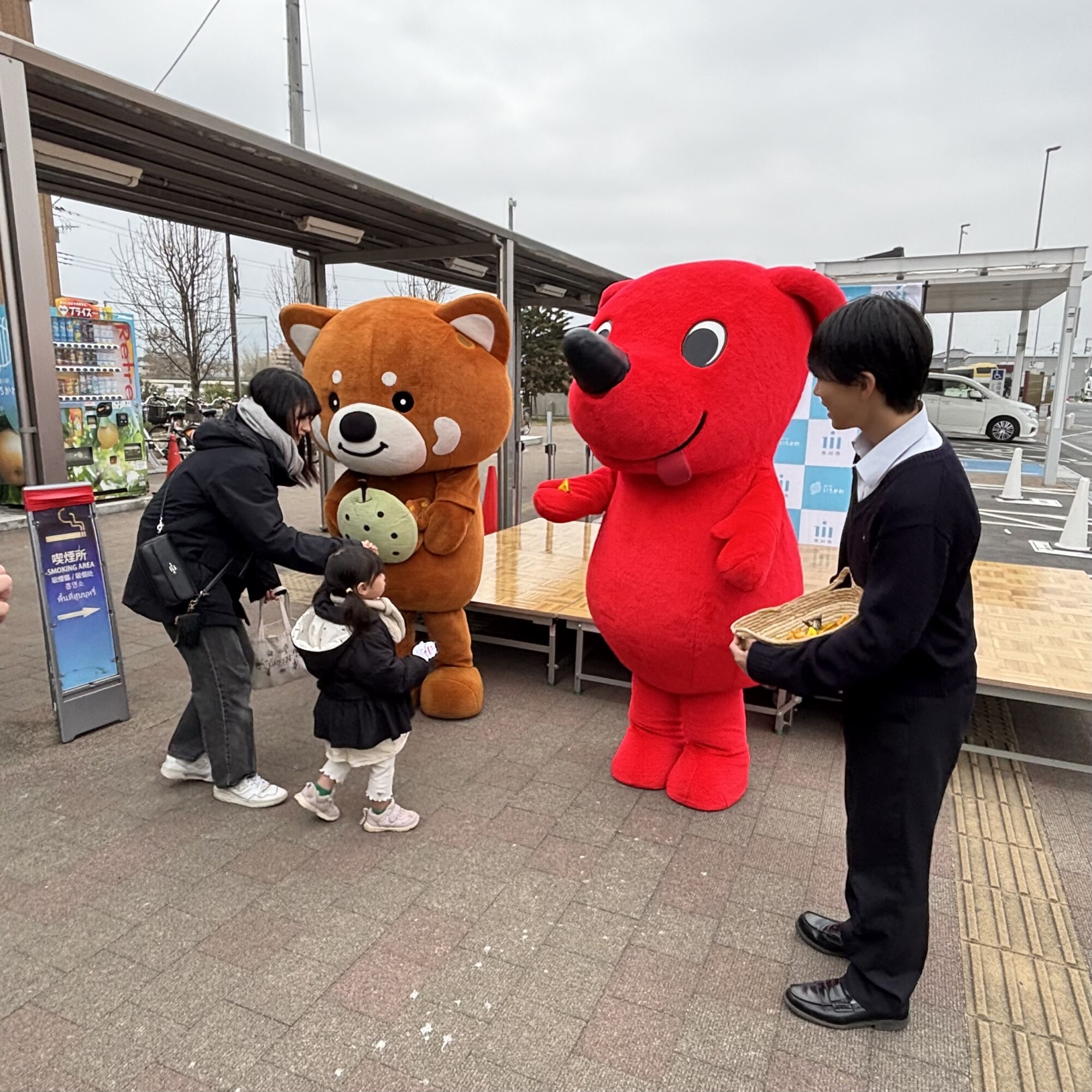 2月7日(土)、道の駅いちかわにて、千葉県のマスコットキャラクター「チーバくん」と、市川市動植物園のキャラクター「梨丸くん」による、豆菓子配布と写真撮影会が開催されました!