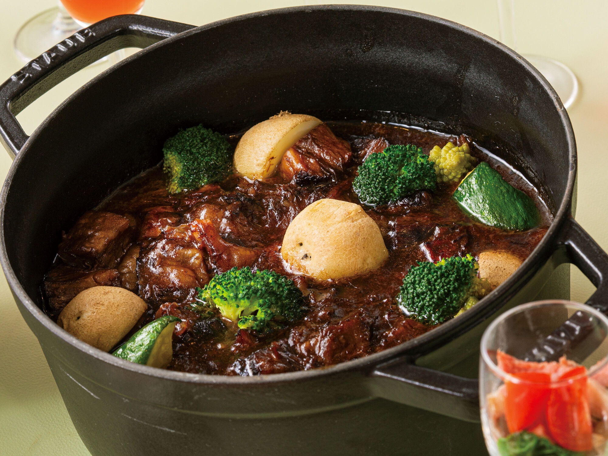メインはステーキだけではありません。リブロースは、その柔らかさを最大限に活かす「しゃぶしゃぶ」でどうぞ 。また、じっくり煮込んだ「ブッフ・ブルギニョン(牛バラ肉の赤ワイン煮込み)」など、フレンチの技法が光る逸品も揃い、肉料理の奥深さを再発見できます 。