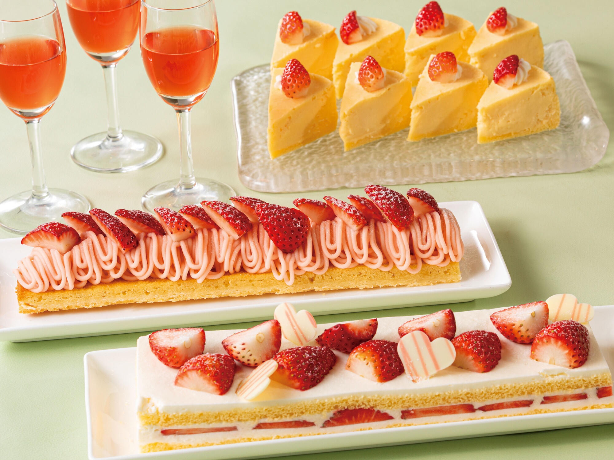 お肉を存分に堪能した後は、別腹の出番です。ビュッフェ台を華やかに彩るのは、旬のいちごを贅沢に使用したデザートの数々 。