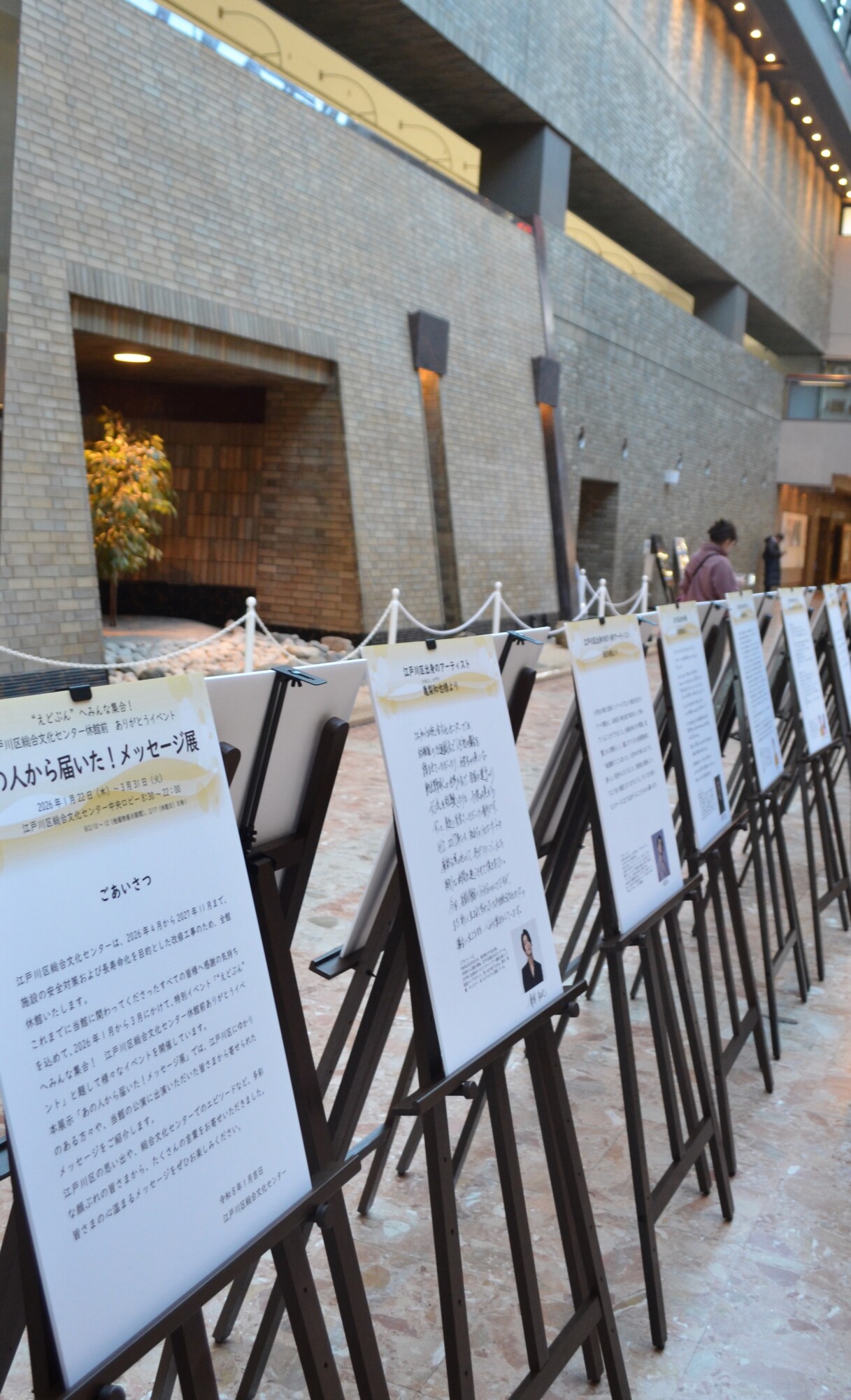 改修工事のため4月から2027年11月まで全館休館となる江戸川区総合文化センターでは、「休館前ありがとうイベント」として、3月までさまざまな催しが行われている。現在は「あの人から届いた! メッセージ展」を開催中。